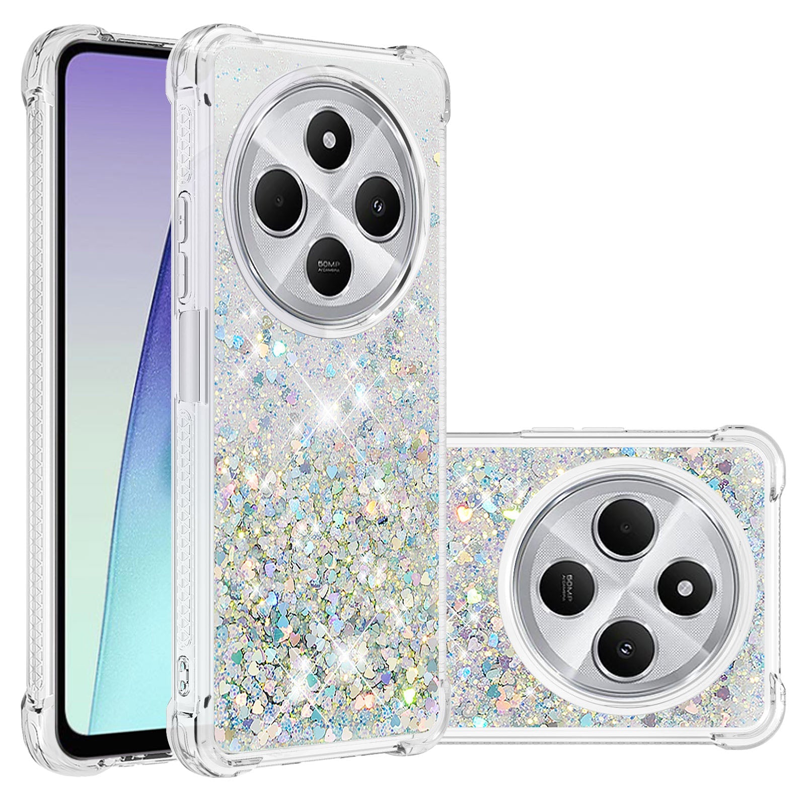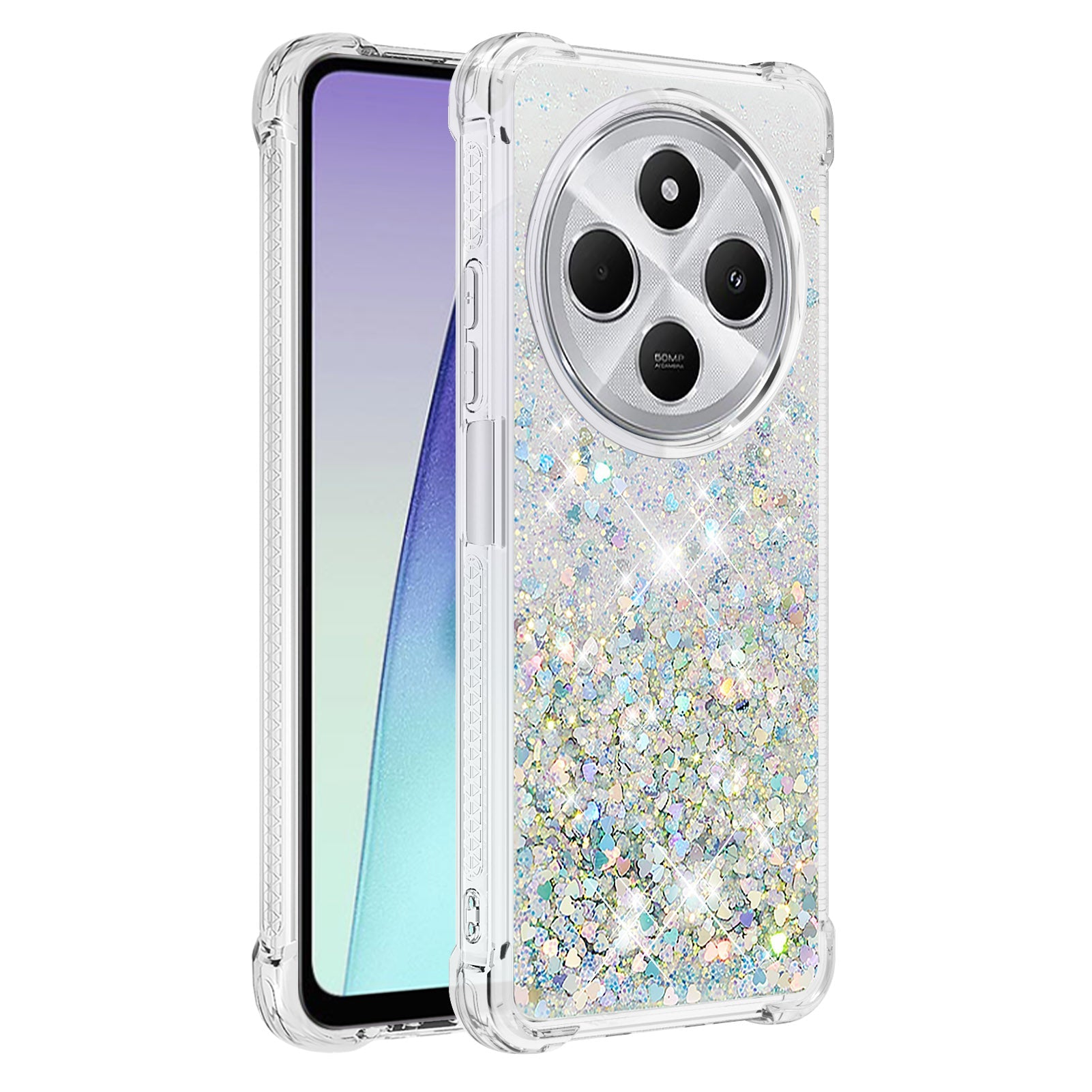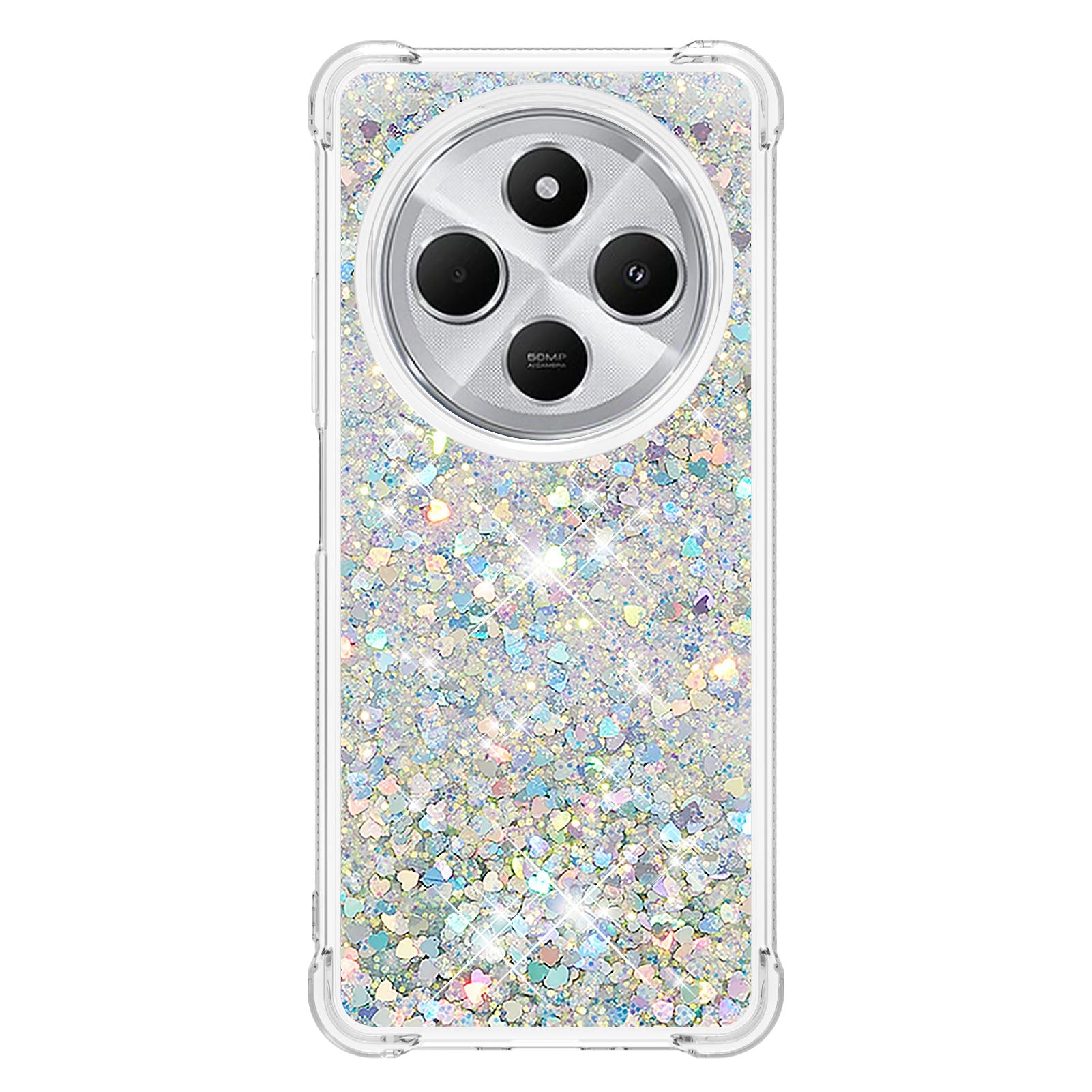 For Xiaomi Redmi 14R 5G / Xiaomi Poco C75 4G / Xiaomi Redmi 14C 4G Case Quicksand Anti-Drop TPU Phone Cover - Silver / Hearts