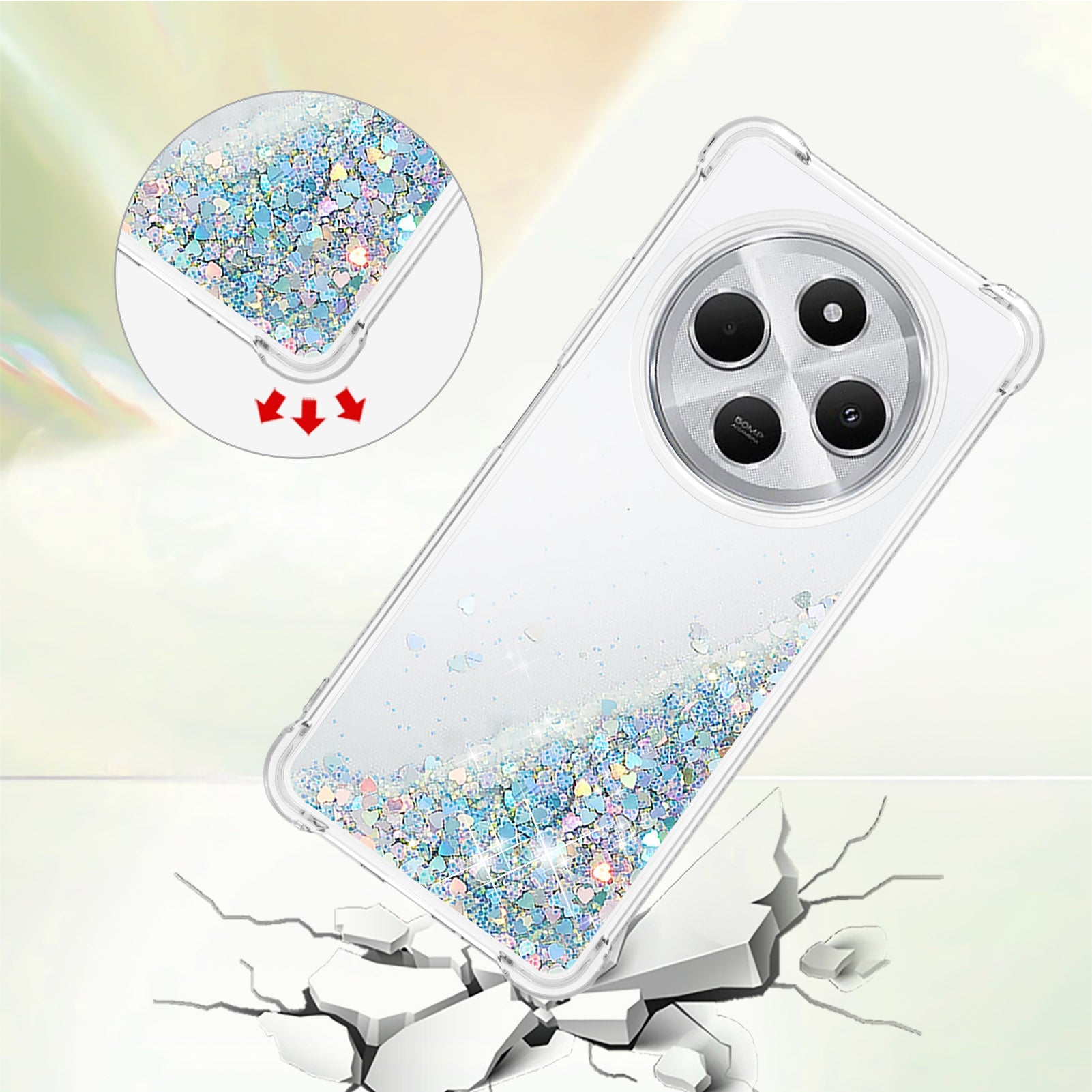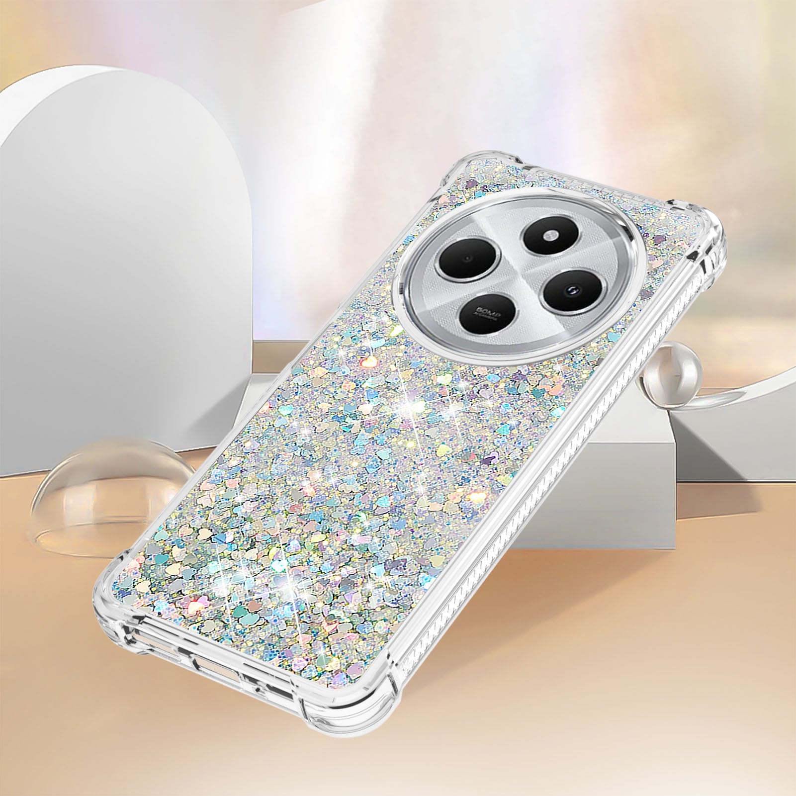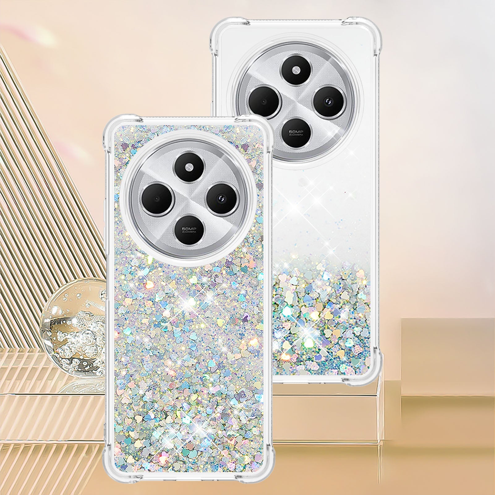 For Xiaomi Redmi 14R 5G / Xiaomi Poco C75 4G / Xiaomi Redmi 14C 4G Case Quicksand Anti-Drop TPU Phone Cover - Silver / Hearts