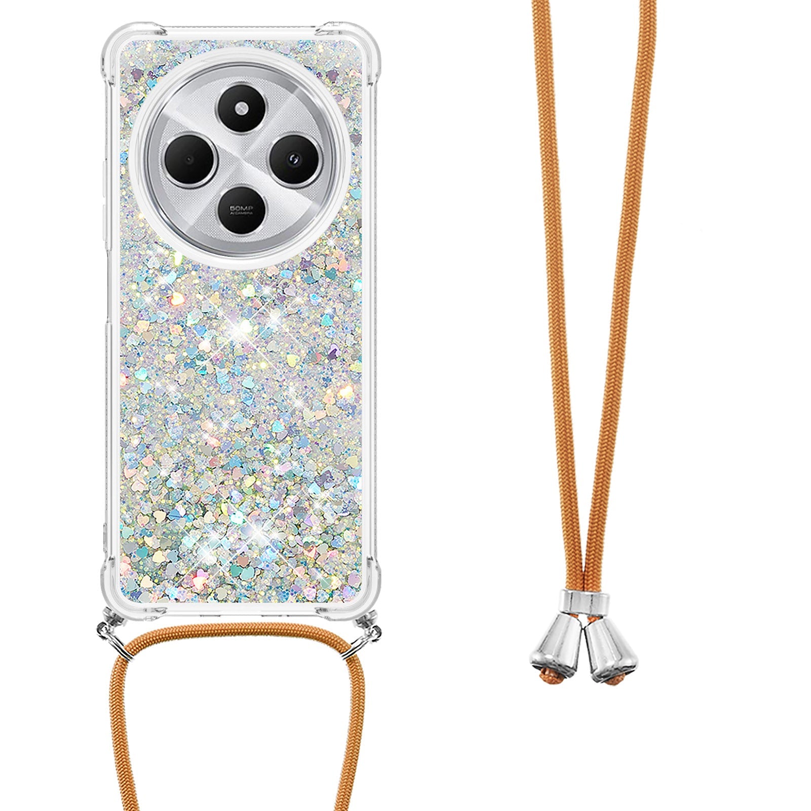 For Xiaomi Redmi 14R 5G / Xiaomi Poco C75 4G / Xiaomi Redmi 14C 4G Case Quicksand TPU Phone Cover - Silver / Hearts