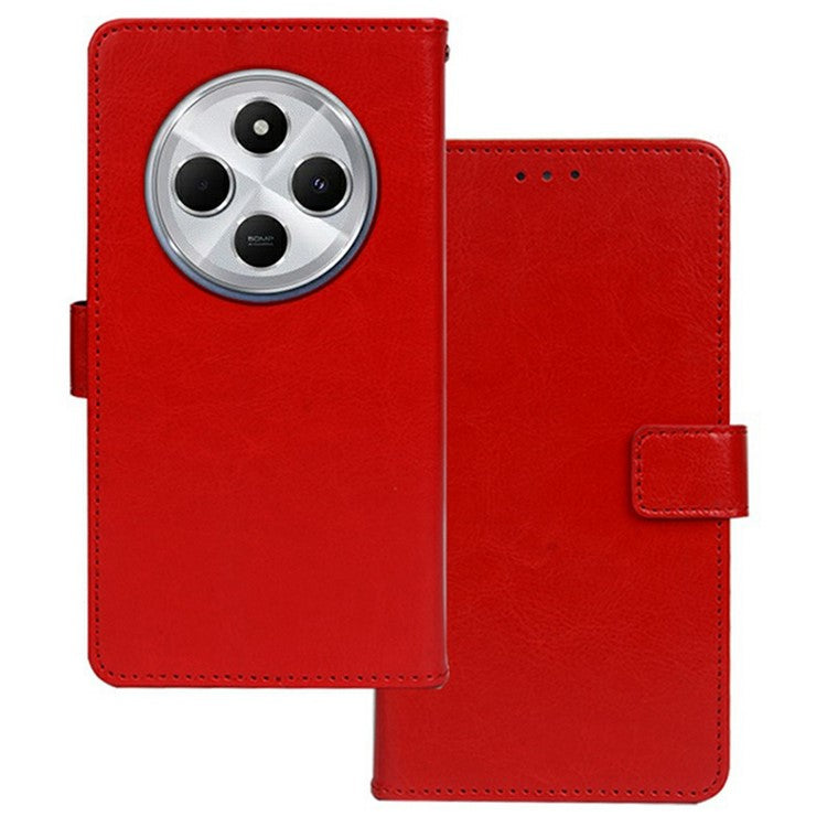 IDEWEI For Xiaomi Poco C75 4G / Redmi 14R 5G / 14C 4G Phone Case Card Slots Leather Cover Crazy Horse Texture - Red
