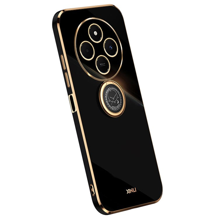XINLI For Xiaomi Poco C75 4G / Redmi 14R 5G / 14C 4G Case Ring Kickstand Electroplating TPU Phone Cover - Black