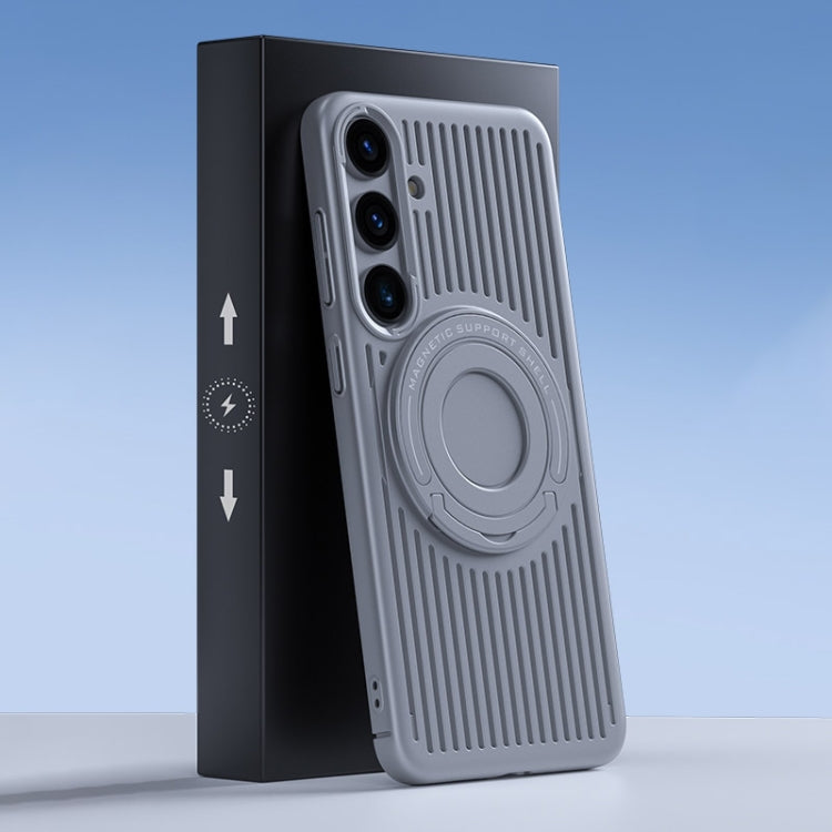 For Samsung Galaxy S24 5G Cooling MagSafe Magnetic Ring Holder PC Phone Case(Grey)