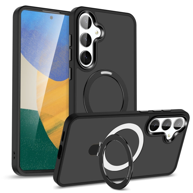 For Samsung Galaxy S24 5G MagSafe Holder Skin-feel PC Hybrid TPU Phone Case(Black)