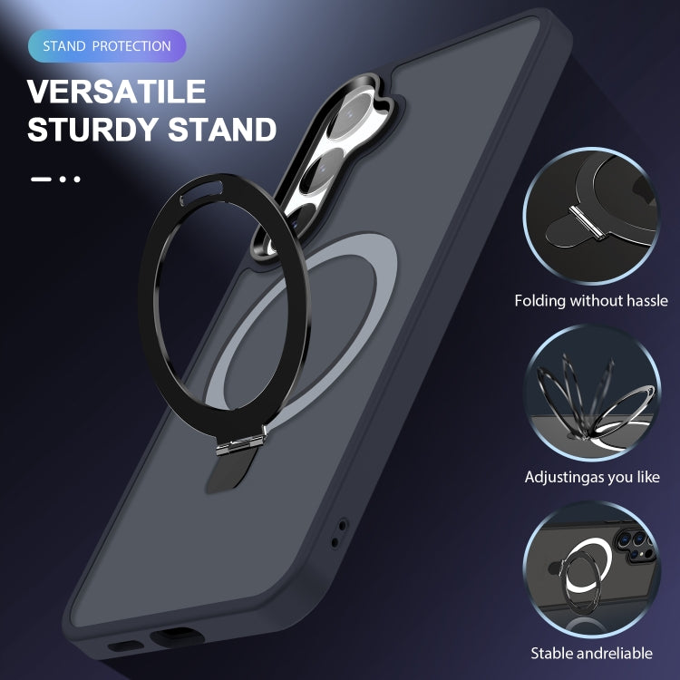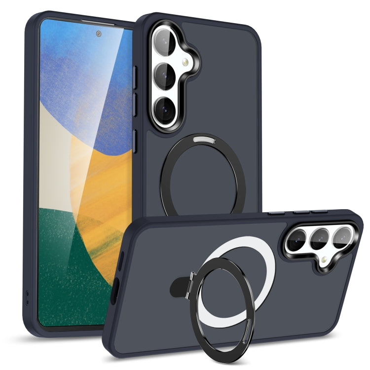 For Samsung Galaxy S24 5G MagSafe Holder Skin-feel PC Hybrid TPU Phone Case(Dark Blue)