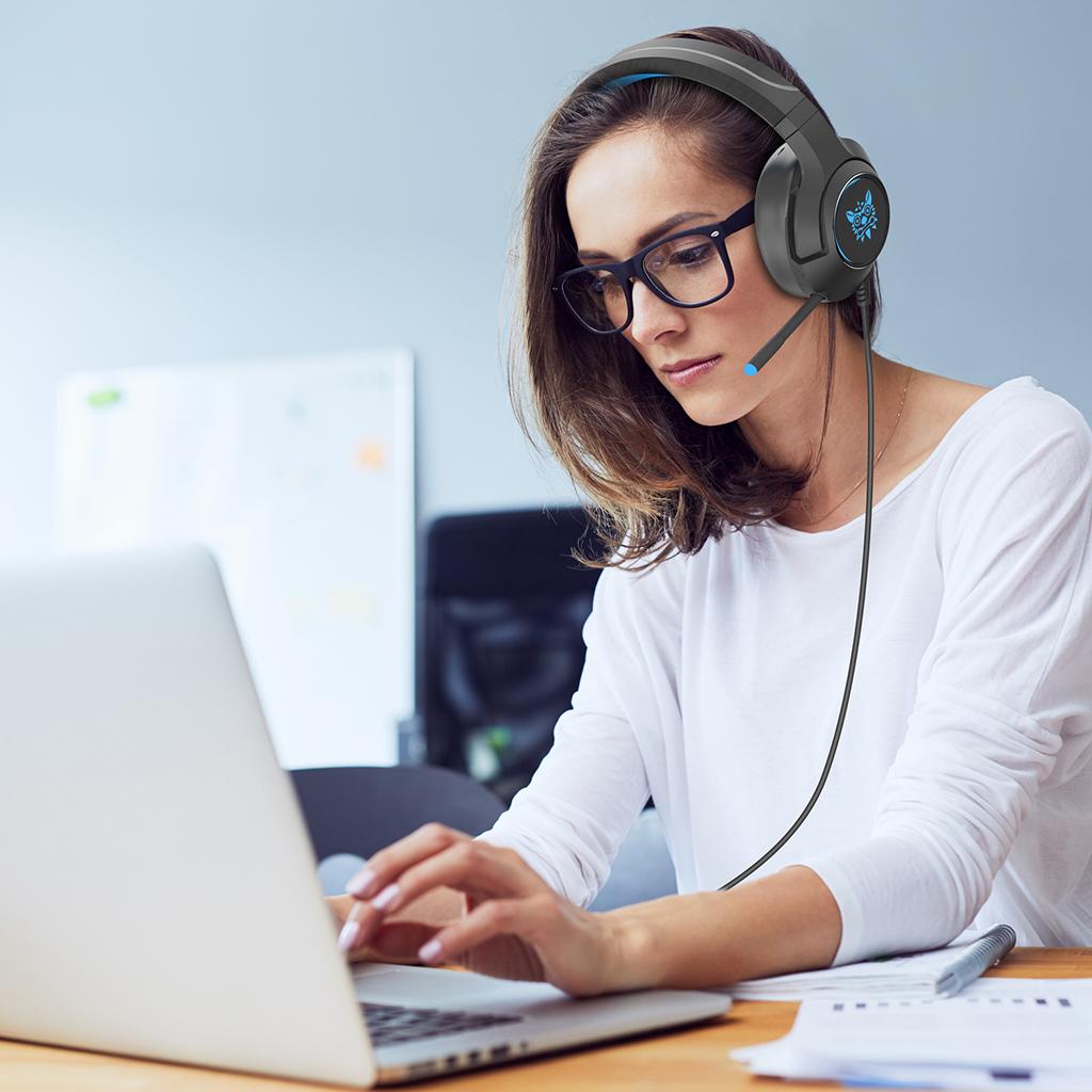 3.5mm Jack Plug Headset Wired Headphone EarBuds Ear-Cup Adjustable Black