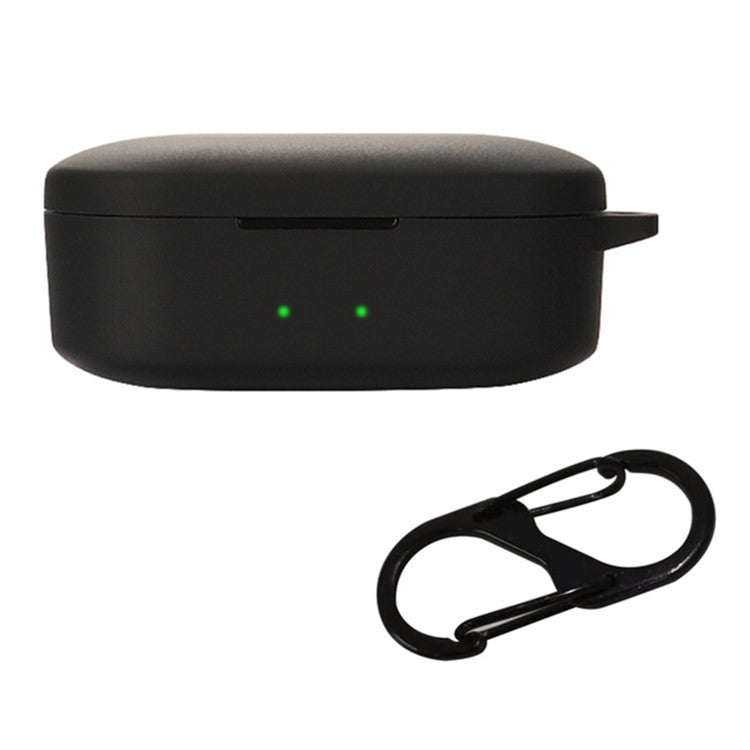 Anti-shock Protection Case for QCY T2C Earphone Charging Box, Silicone Headset Soft Cover with Anti-Lost Buckle - Black