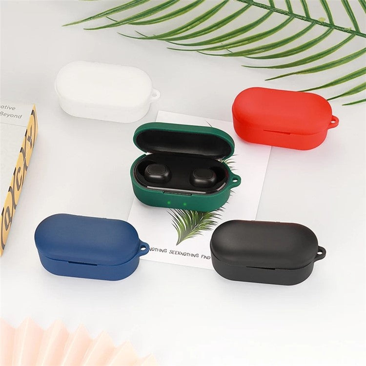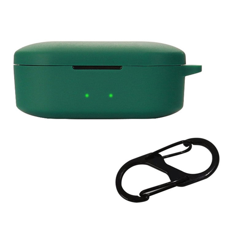 Anti-shock Protection Case for QCY T2C Earphone Charging Box, Silicone Headset Soft Cover with Anti-Lost Buckle - Blackish Green
