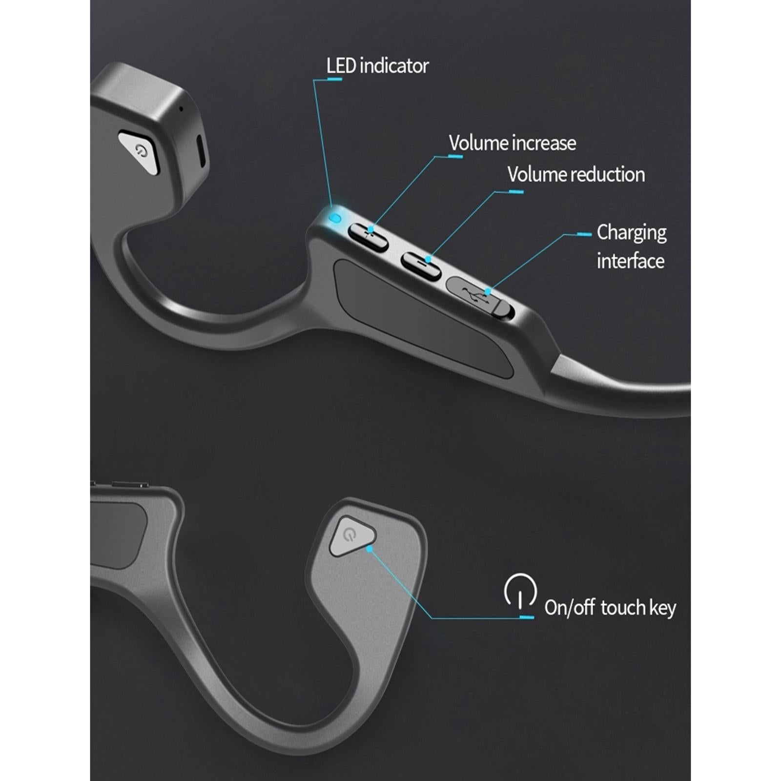 Bone Conduction Headset Bluetooth Wireless Outdoor Open Ear Headphones Blue