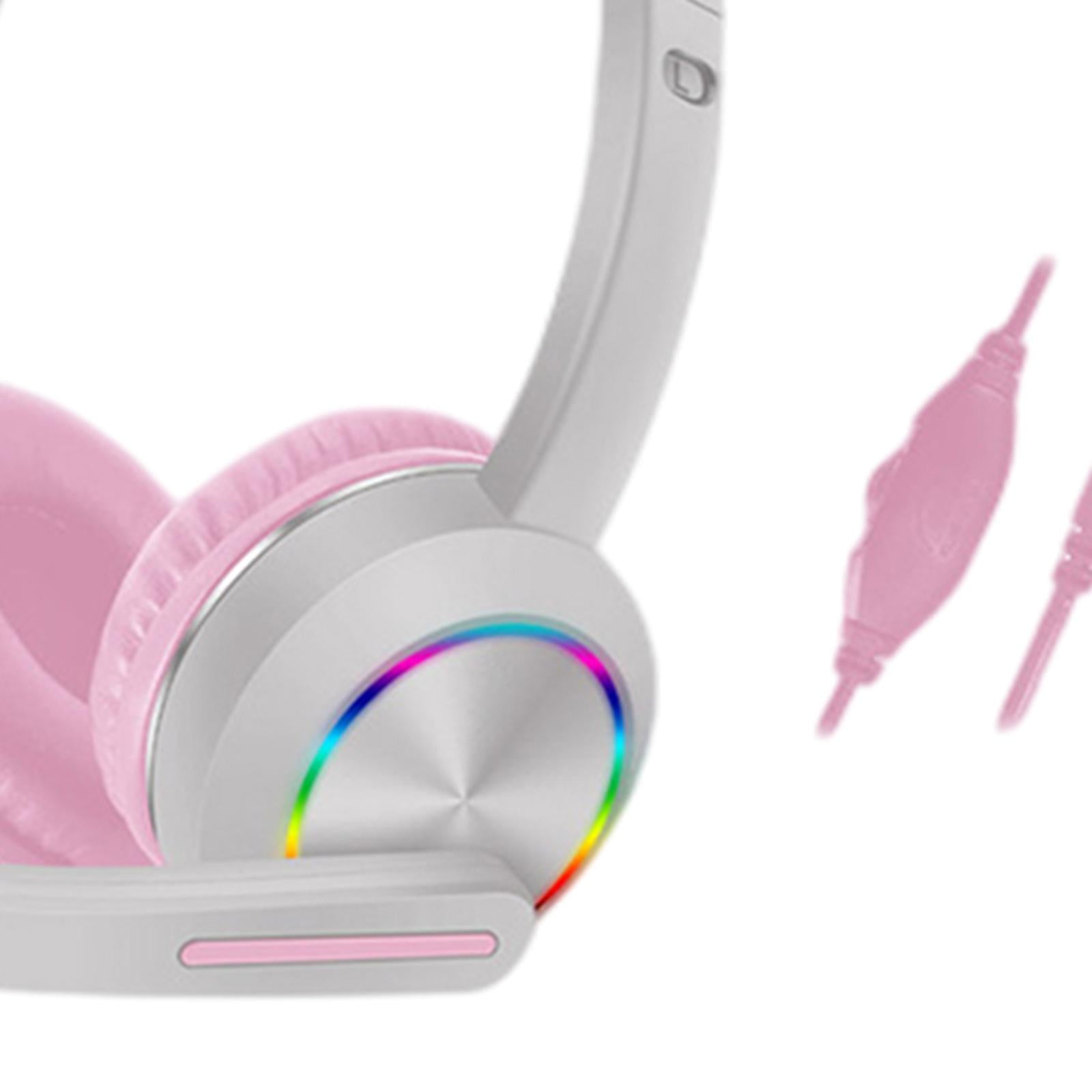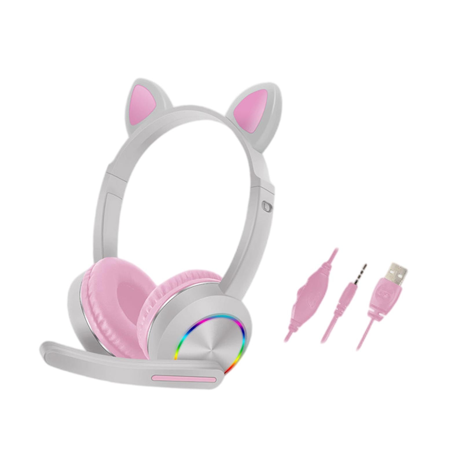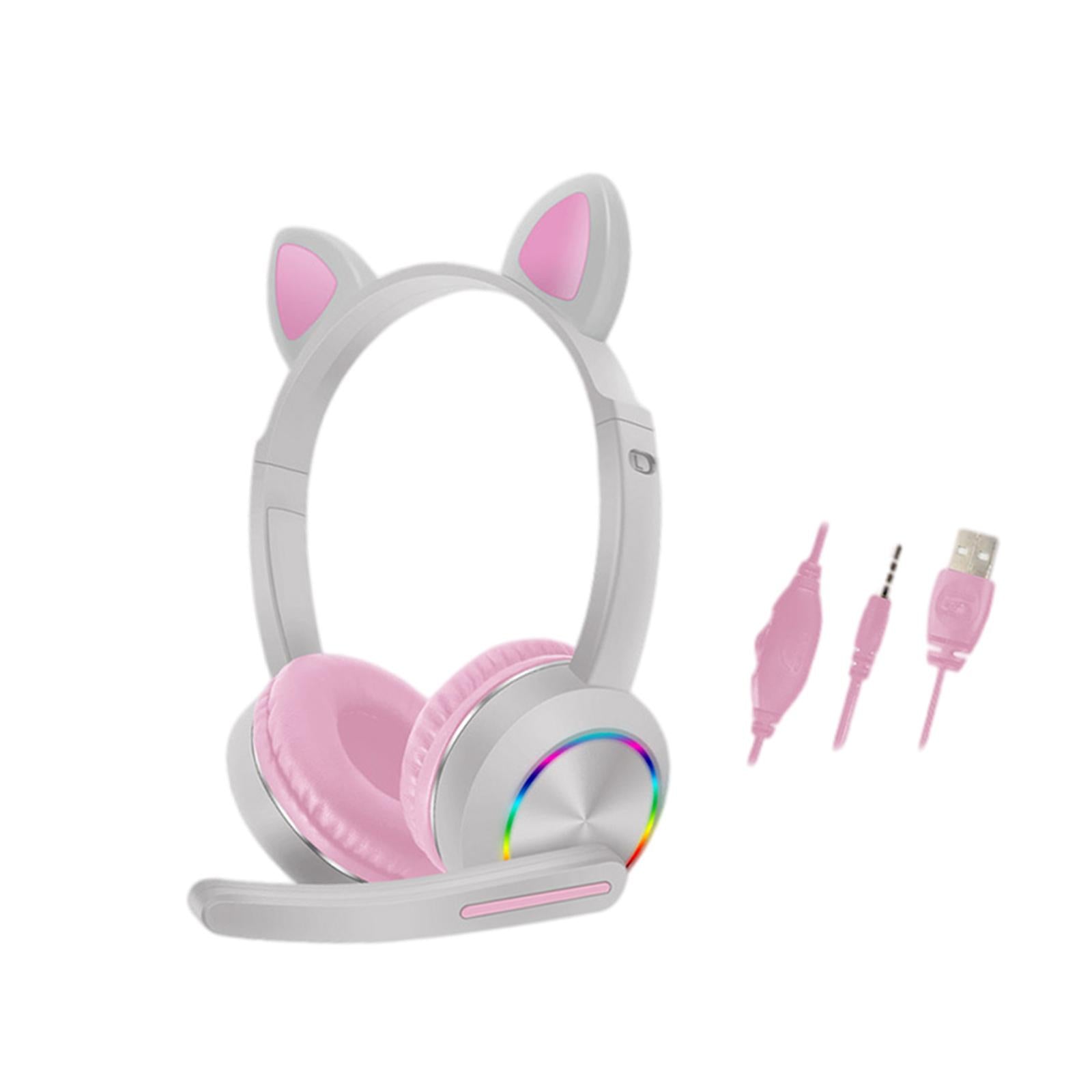 Cat Ear Headphones with Mic 3.5mm Lightweight Headphones Noise Canceling Gray