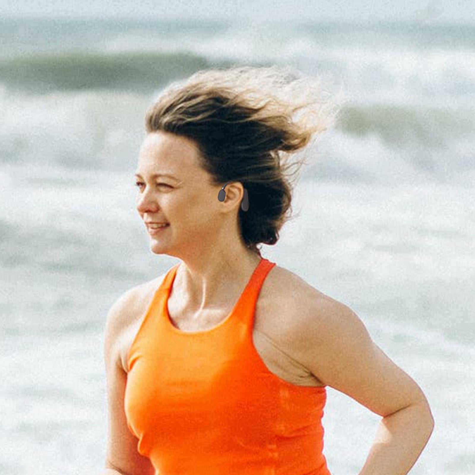 Open-Ear Design - Bone conduction technology delivers audio through the cheekbone, Loudspeaker close to the ear but it is not inside the ear. It will help listens to the surroundings at the same time, let you keep safety for biking, running, driving and more portable for business