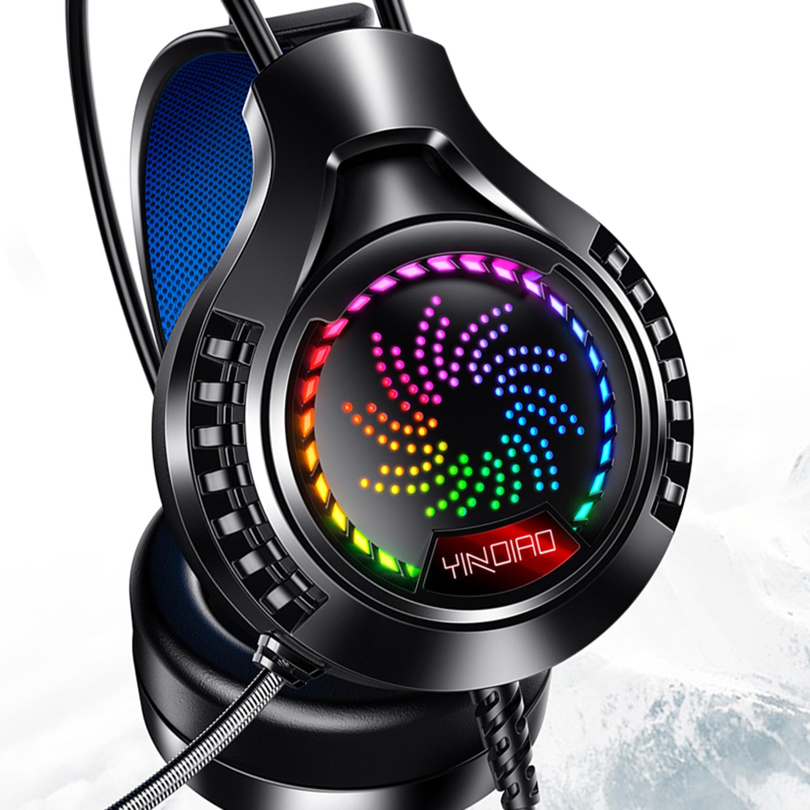 Gaming Headset Soft Earmuffs Noise Canceling with Light for Phone Office Single 3.5mm Black