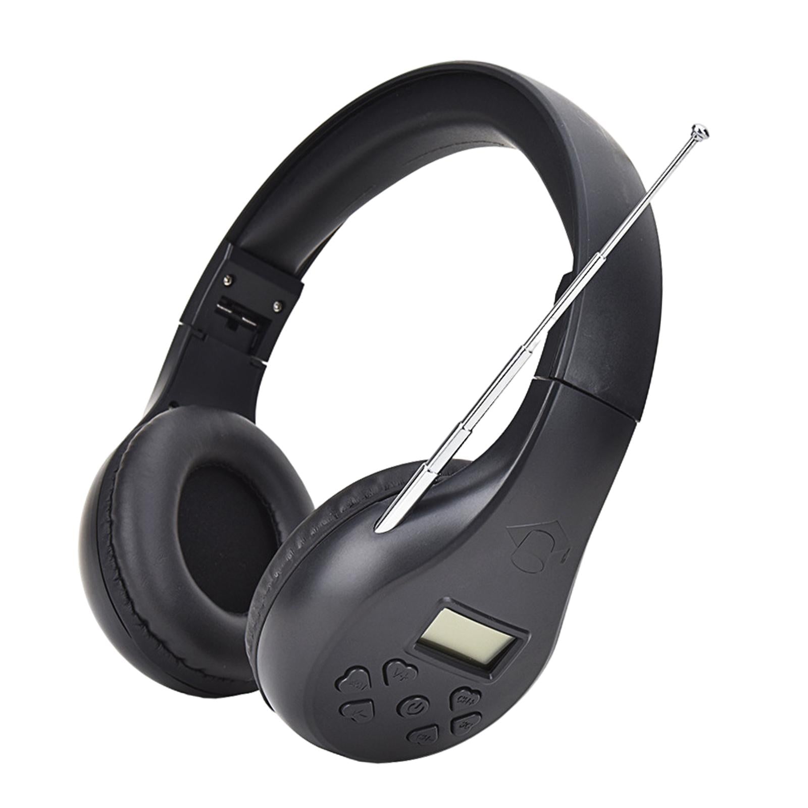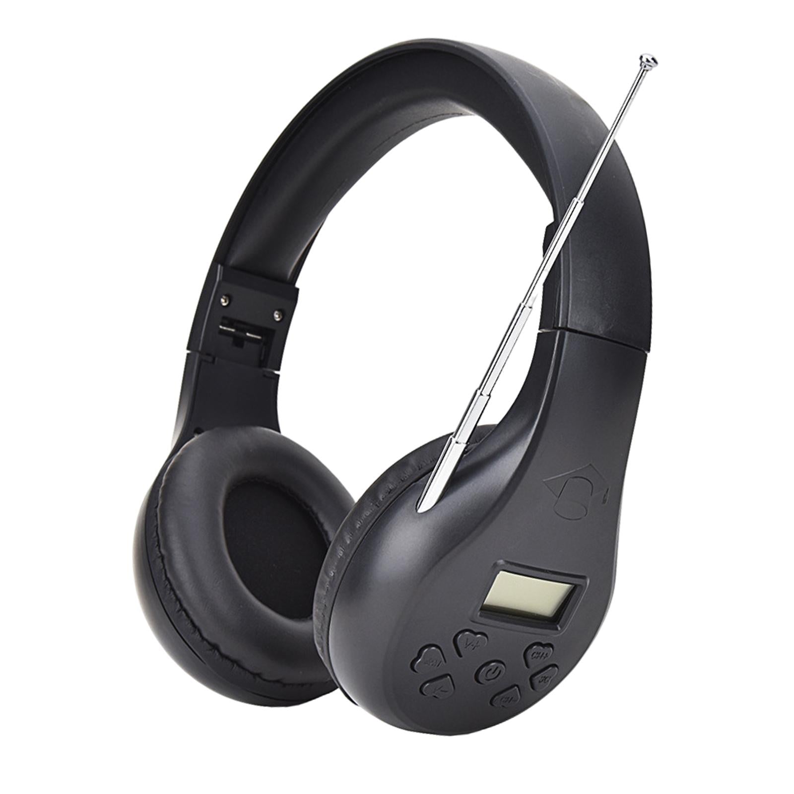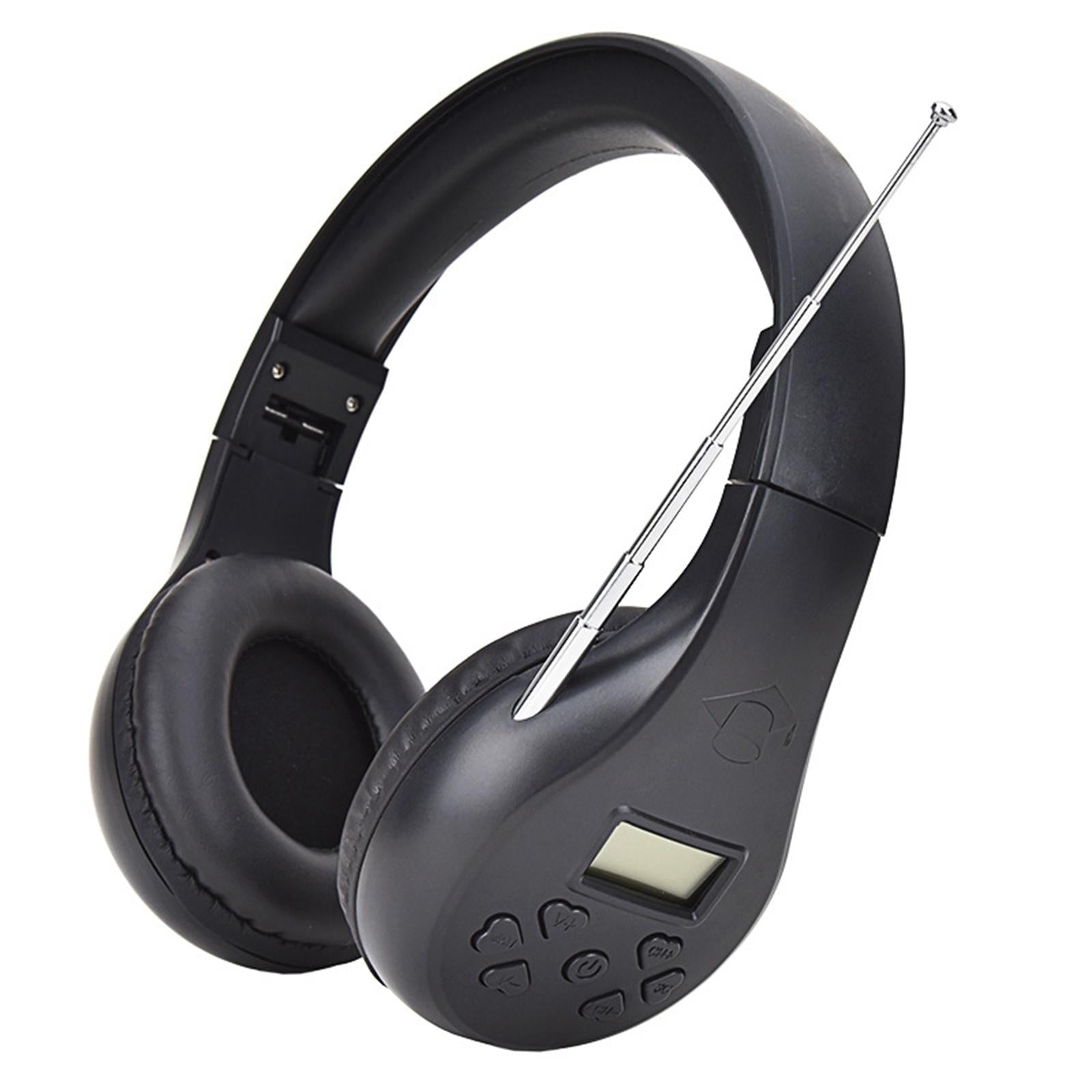 Head-Mounted FM Headset Foldable Headphone with External Antenna Tool Black
