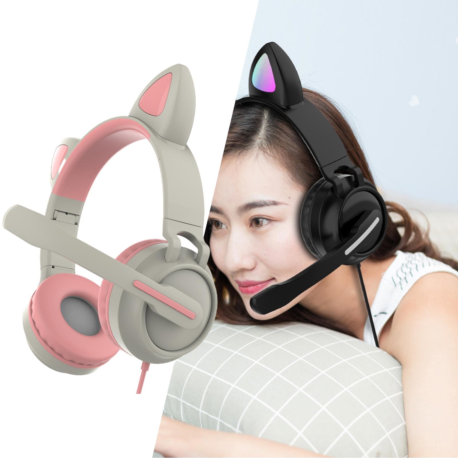 Cute Cat Ear & Shining LED Flashing Light: The cute Bluetooth headphones features with a lovely cat ear design and fancy LED lights. It can add fun and convenient for manual control.
