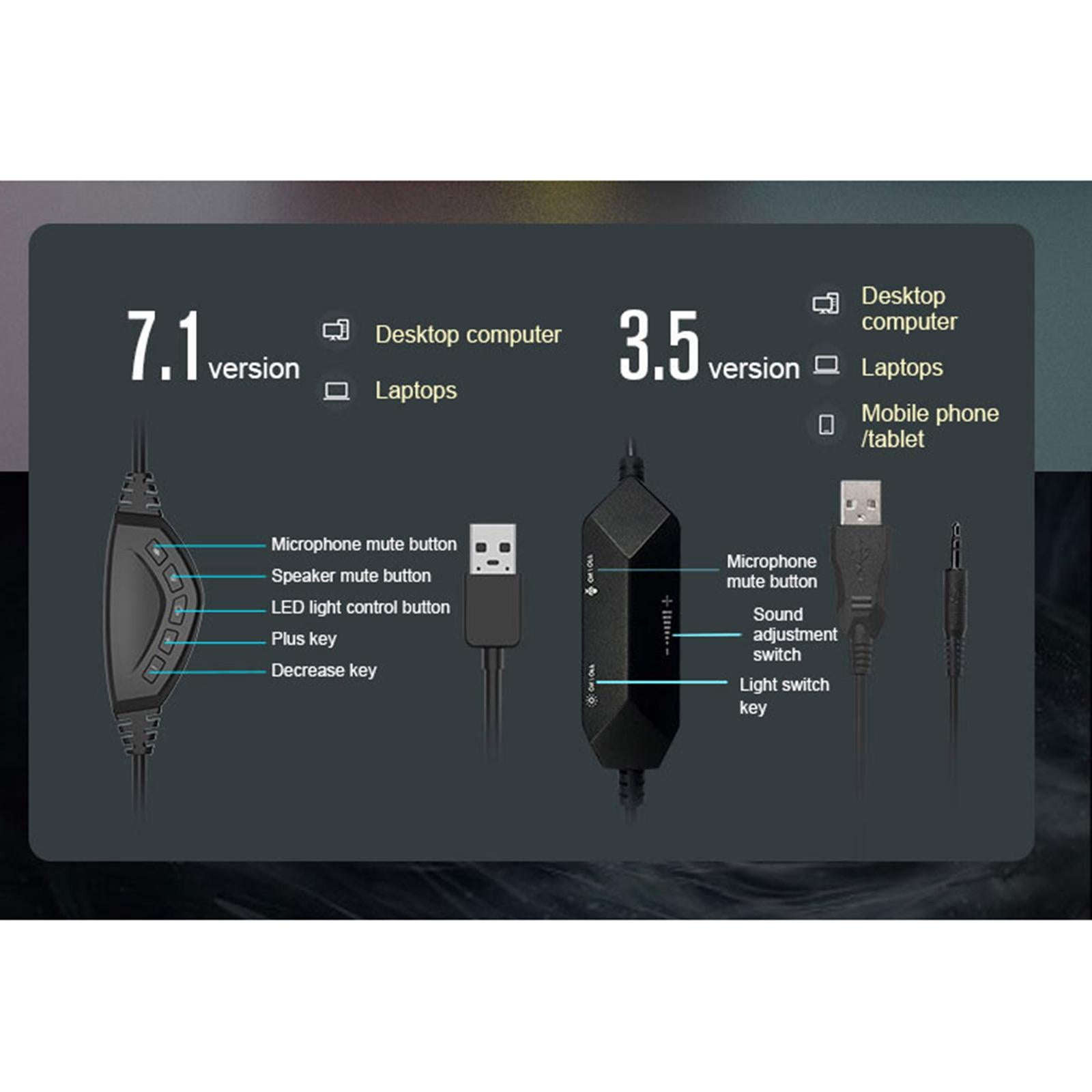 LED Colorful Over Ear Gaming Headset Headphones with Mic Pink 7.1 Channel