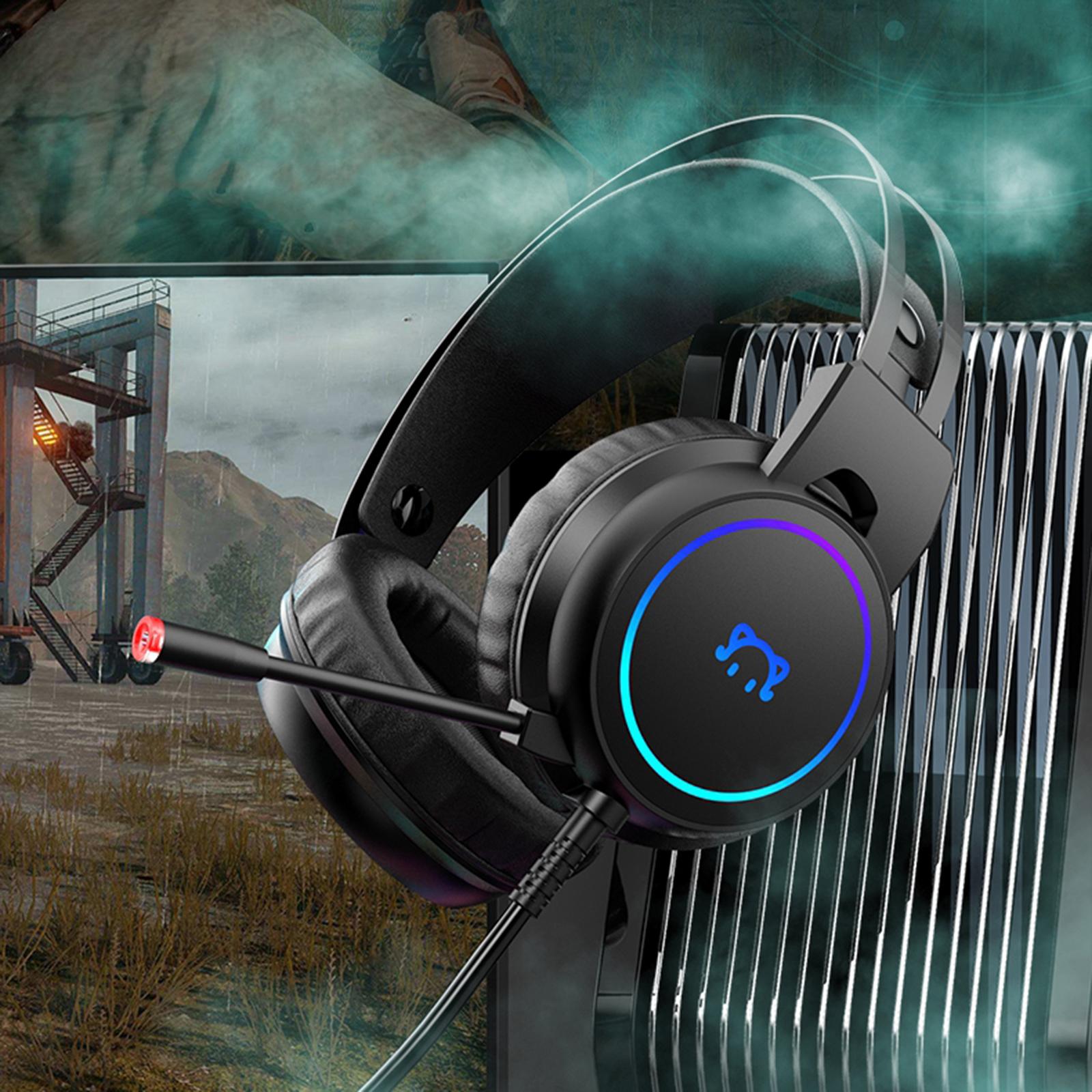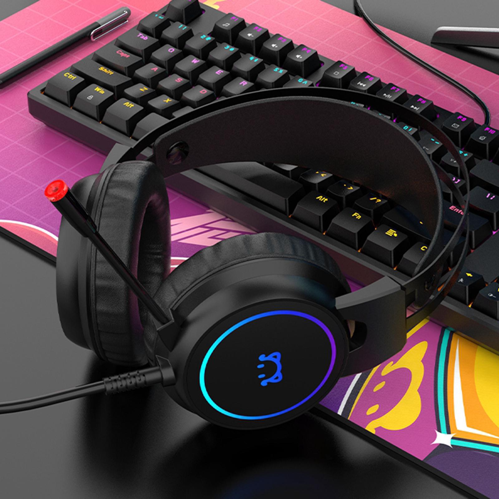 LED Gaming Headphones Wired Earphones 50mm Drive 2.2m Cable Black USB 3.5mm