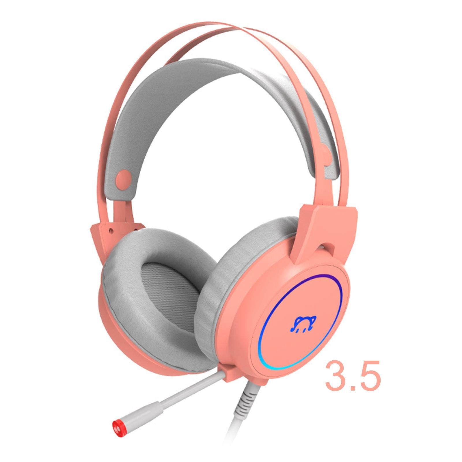 LED Gaming Headphones Wired Earphones 50mm Drive 2.2m Cable Pink USB 3.5mm