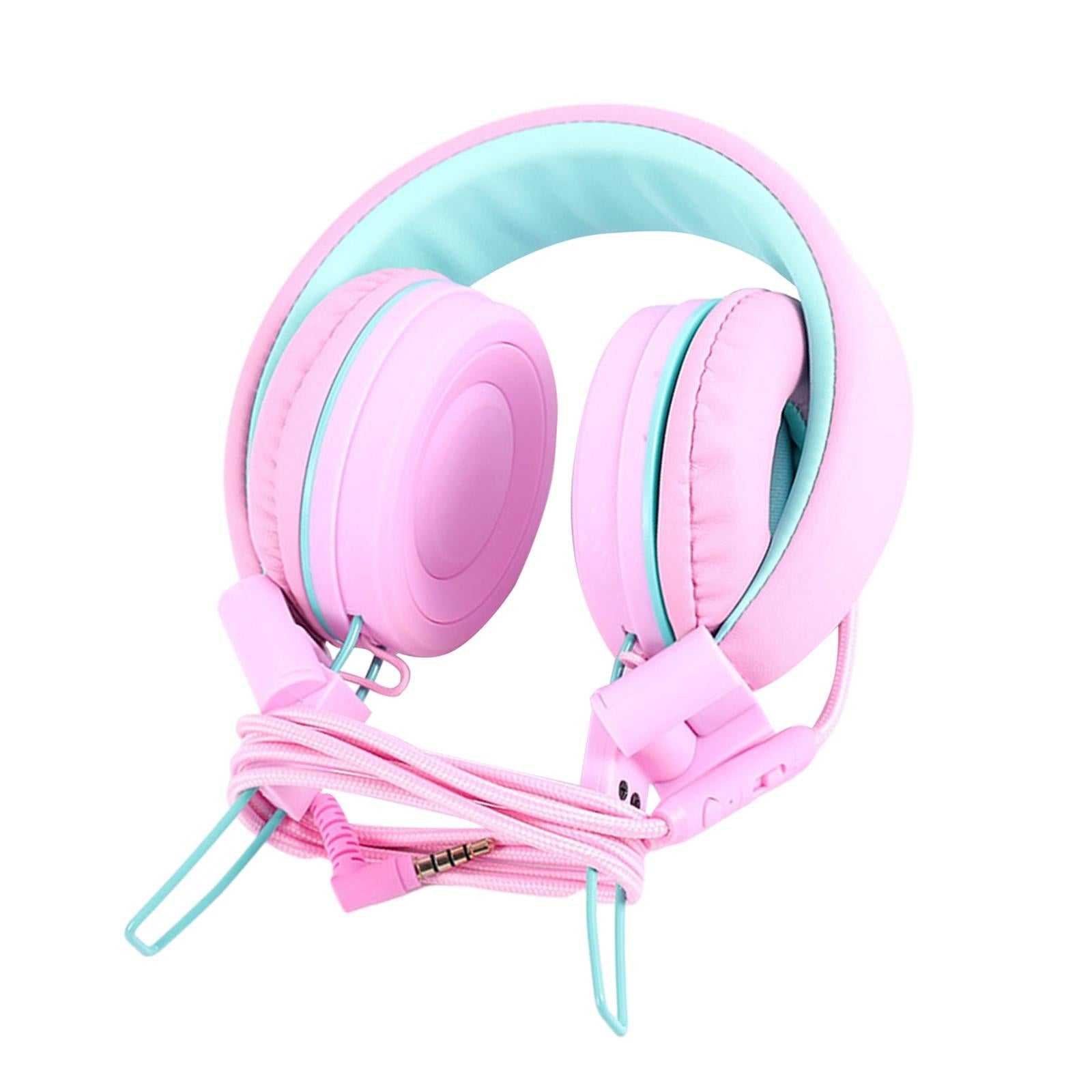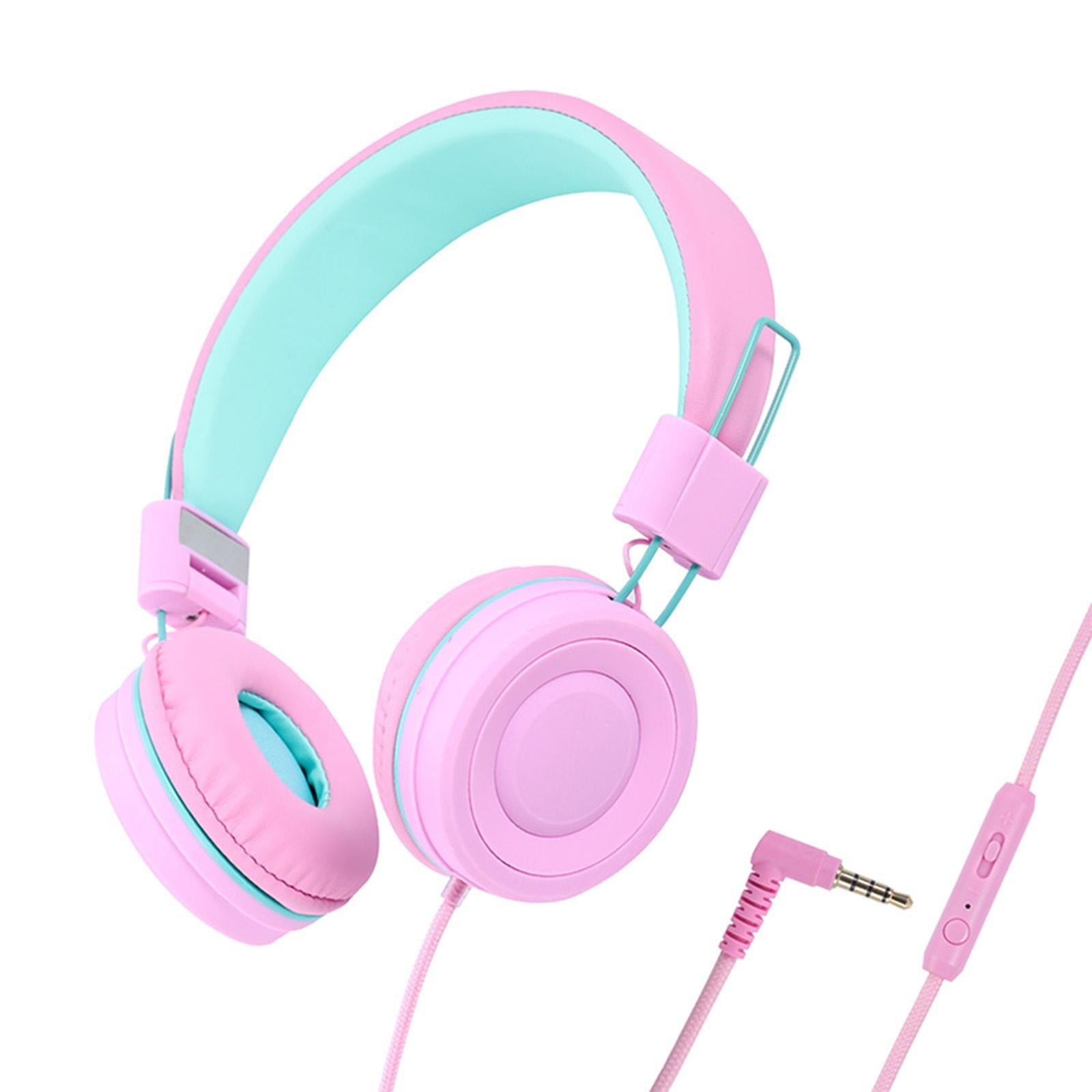 On-Ear Wired Headset Noise Cancellation 3.5mm Socket for School Travel Kids Pink