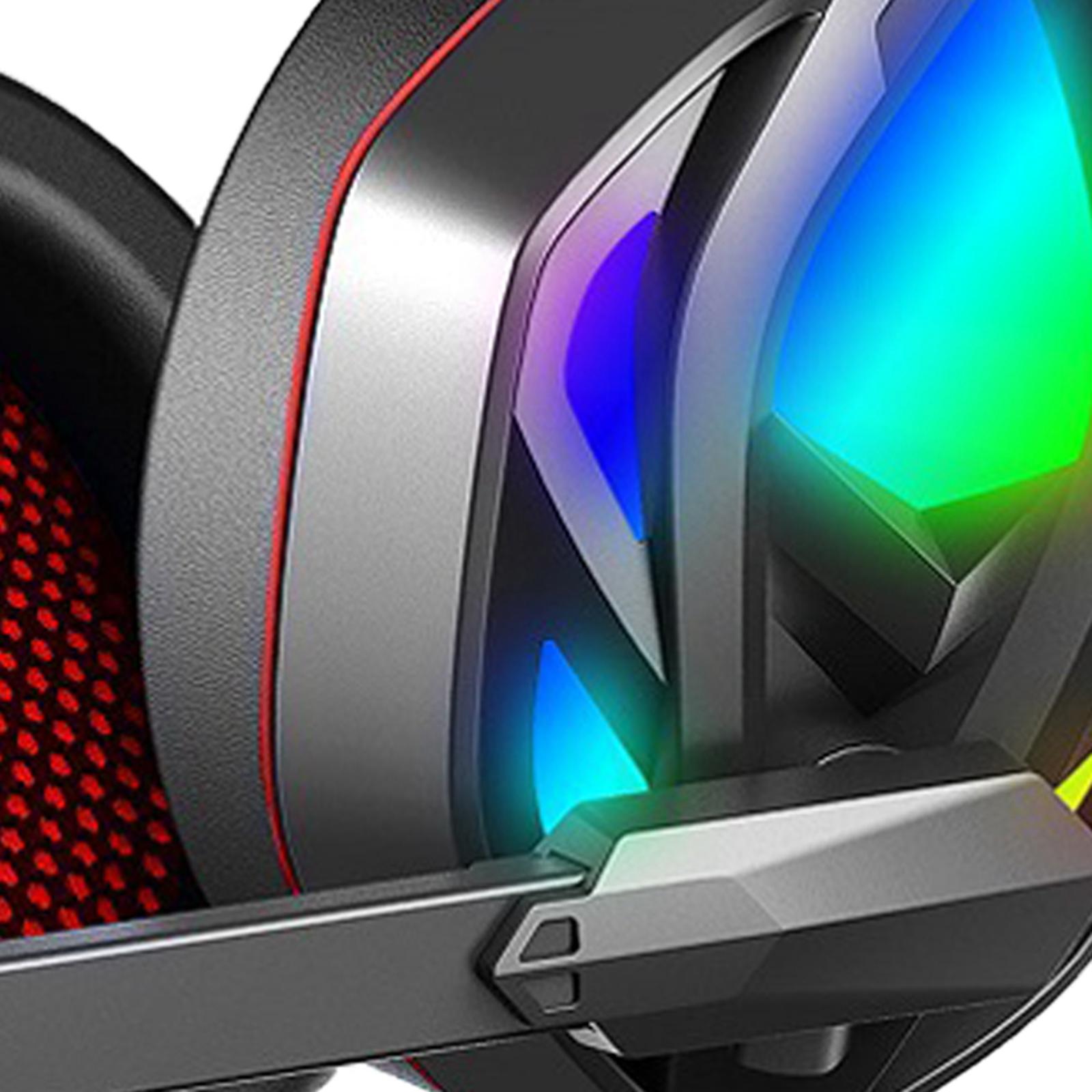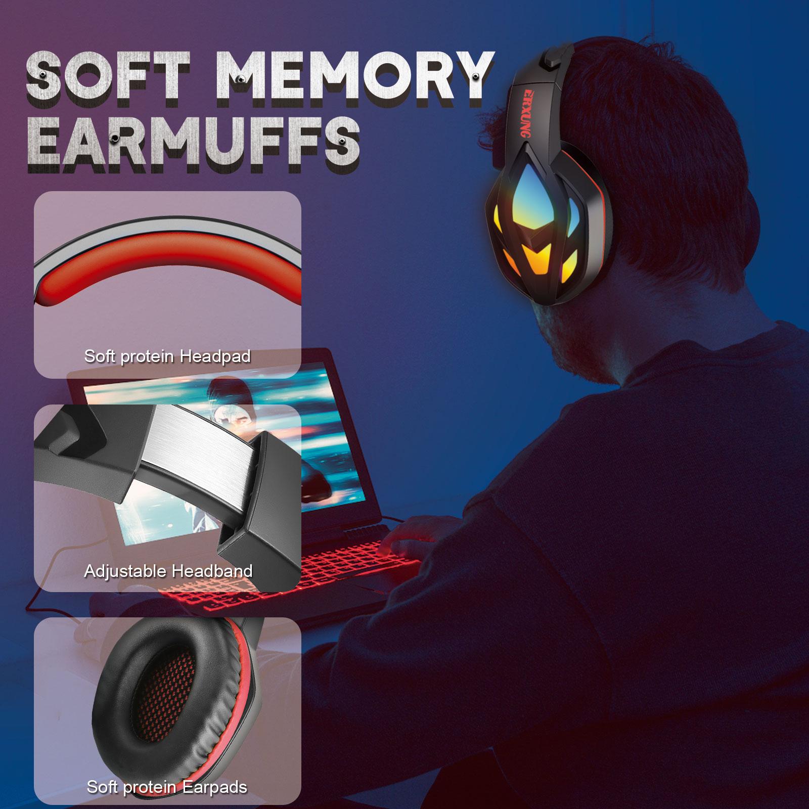 [Great Humanized Design]Unique design and soft memory breathable earmuffs are more comfortable to wear, suitable for long-term wear.Professional gaming headset,glaring LED lights desigend on the earcups to highlight game atmosphere.