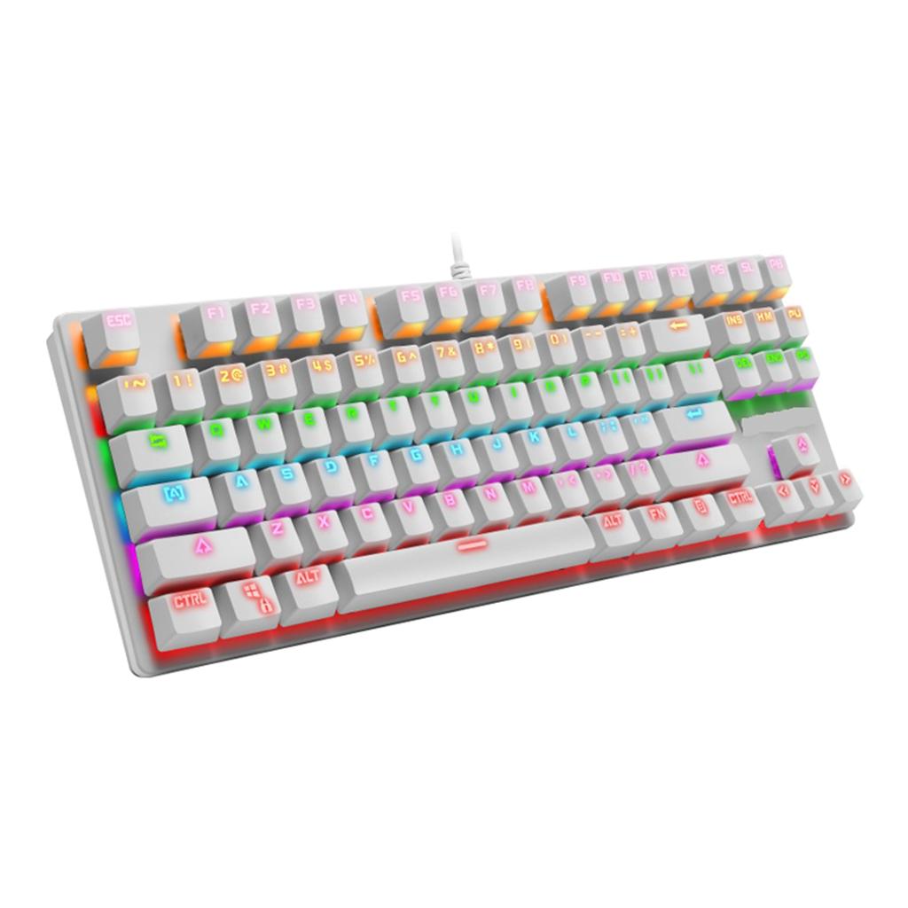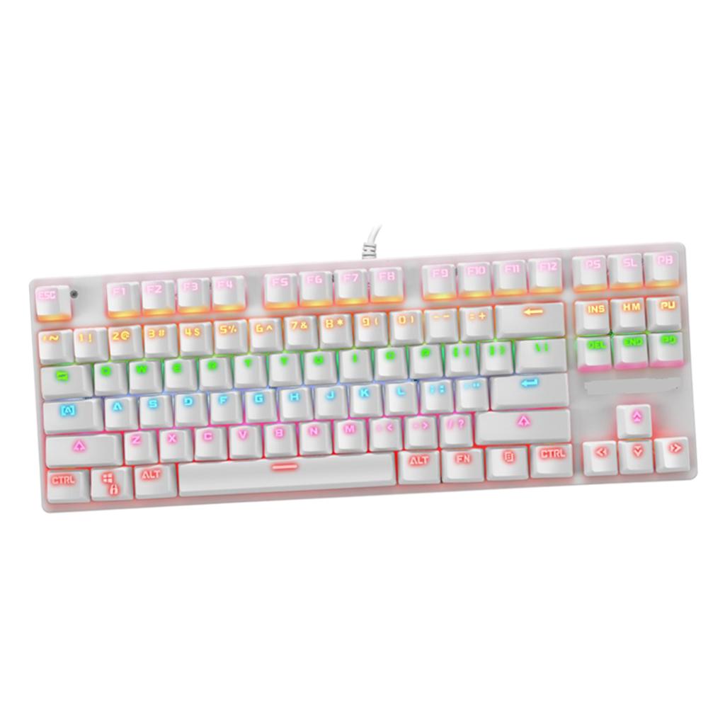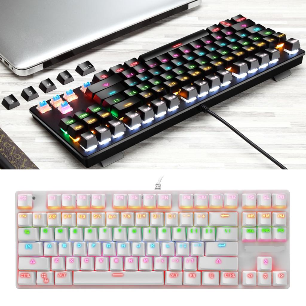 Compact 87 Keys backlight USB Wired mechanical gaming keyboard quiet click sounds fast action with minimal resistance without a tactile bump feel