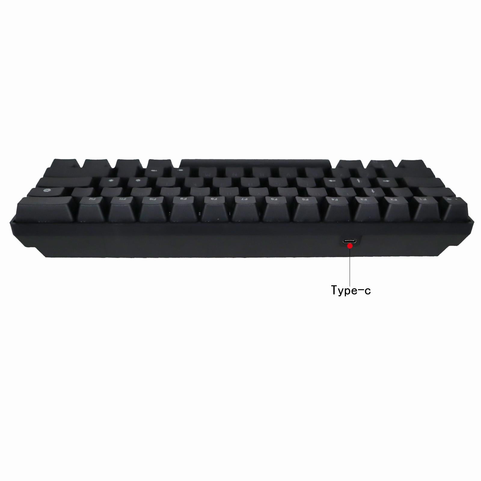 Type-C cable and standard layout: 61 keys, mini size, general layout, type-C USB interface to achieve full key conflict free, professional devices refuse key conflict, more convenient for users to operate.