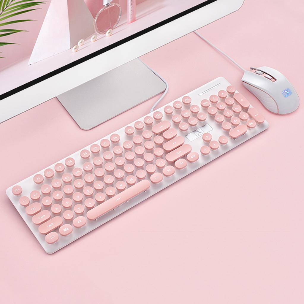 N520 Wired USB Mechanical Keyboard Game Mouse Set Whisper-Quiet pink