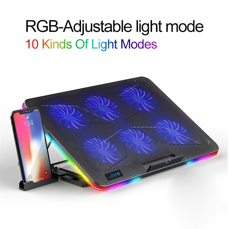 COOLCOLD F5 15.6-inch Laptop Cooling Base RGB Light Height Adjustable Notebook Cooler Stand with 2 USB Ports - Black / Blue