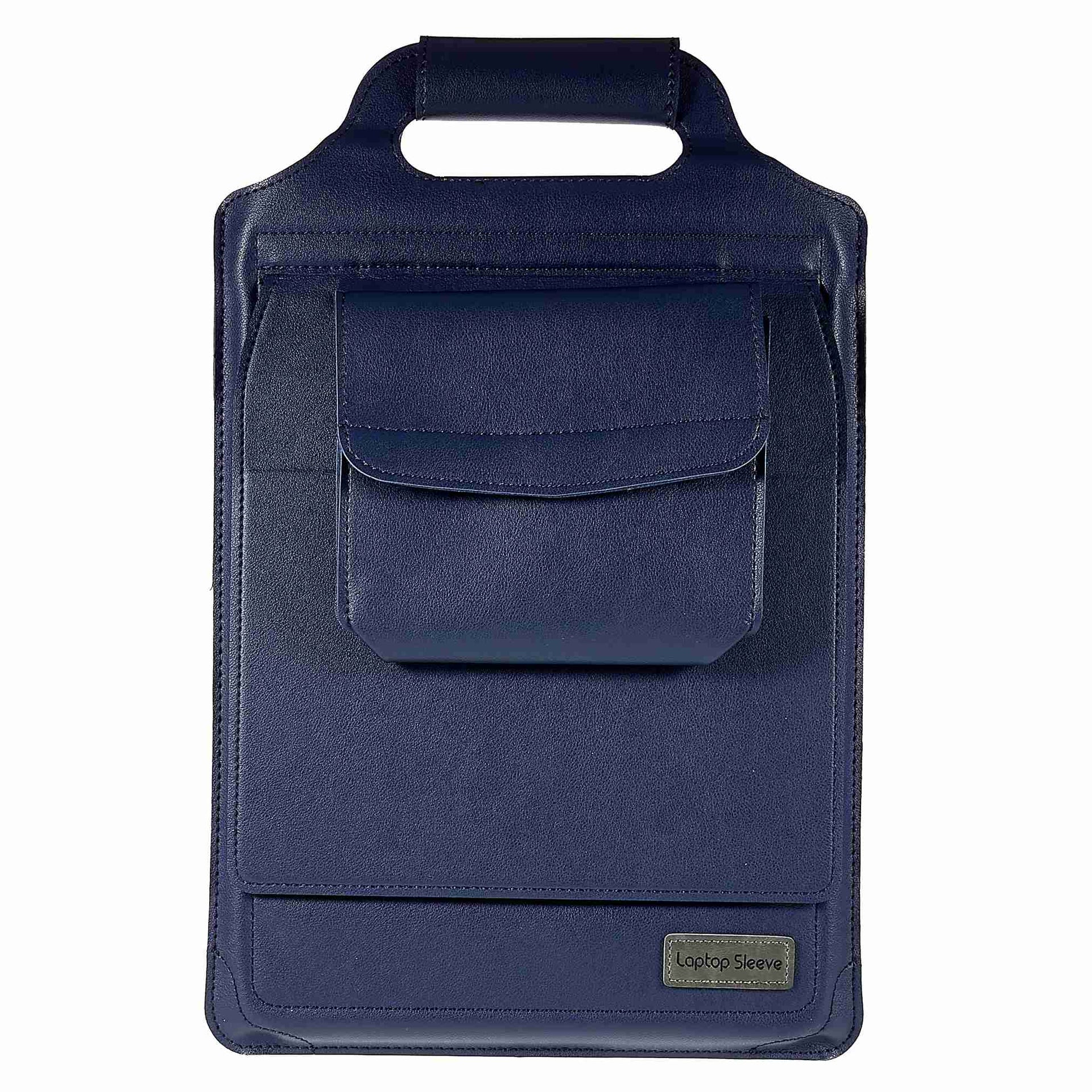 11-12inch PU Leather Laptop Sleeve Case Handheld Carrying Bag with Adjustable Stand - Dark Blue