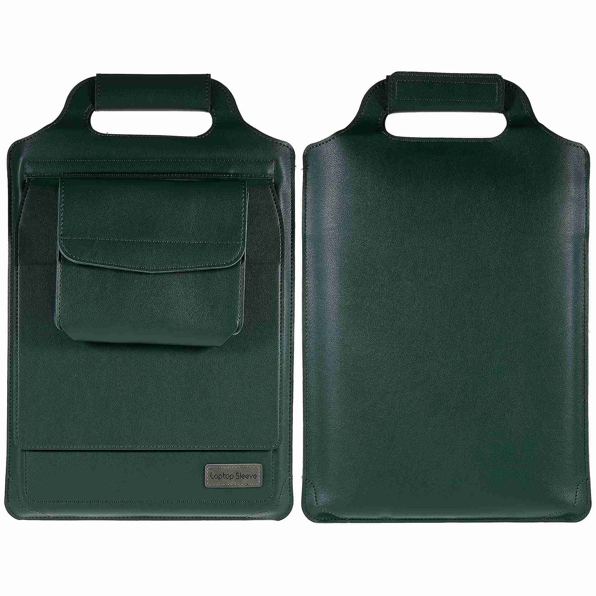 11-12inch PU Leather Laptop Sleeve Case Handheld Carrying Bag with Adjustable Stand - Green
