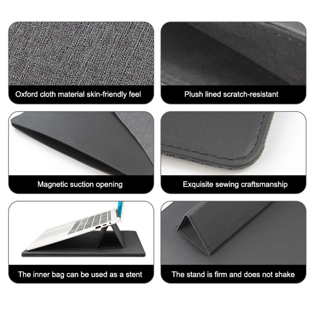 - Not only a laptop sleeve but also a laptop stand holder. Magnetic absorption design, the stand is easy to be unfolded and working to bring a more comfortable working experience when you feel tired. It's very important to protect your neck