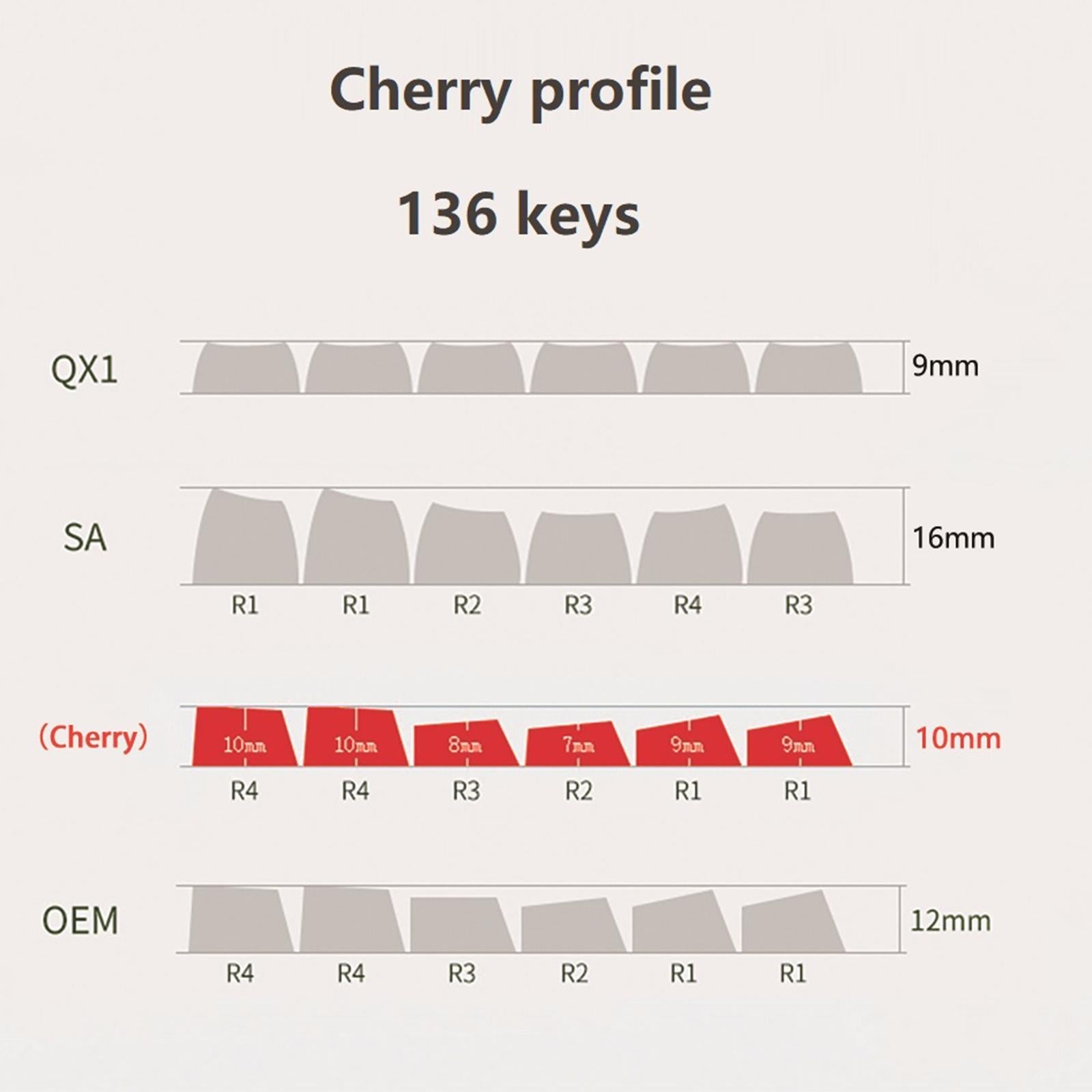 In total 136 key positions, it is suitable for all sizes of mechanical keyboards such as 61/64/87/104 keys, and compatible for CherryMX & Clone switches.