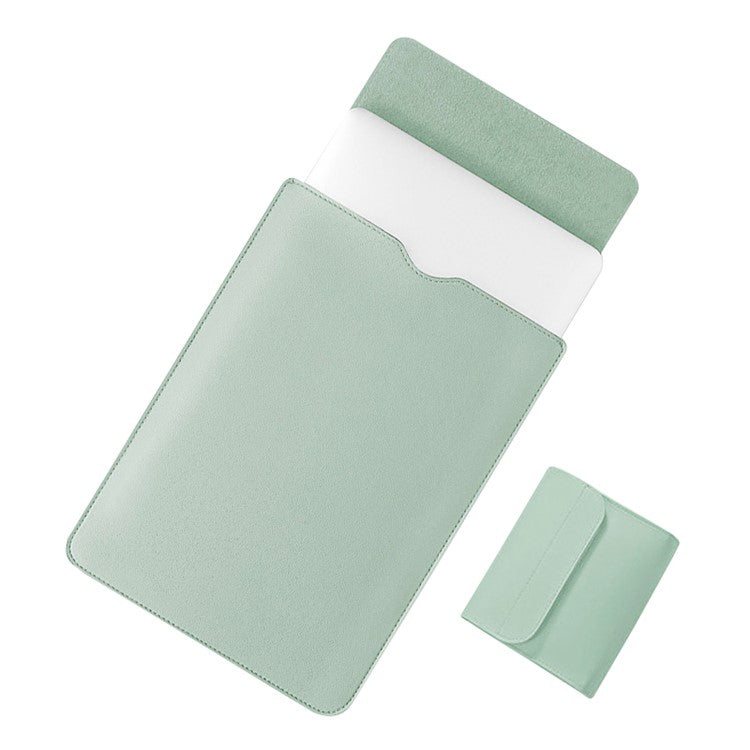 14 inch Laptop Sleeve Ultra-Thin PU Leather Carrying Pouch + Small Bag - Matcha Green