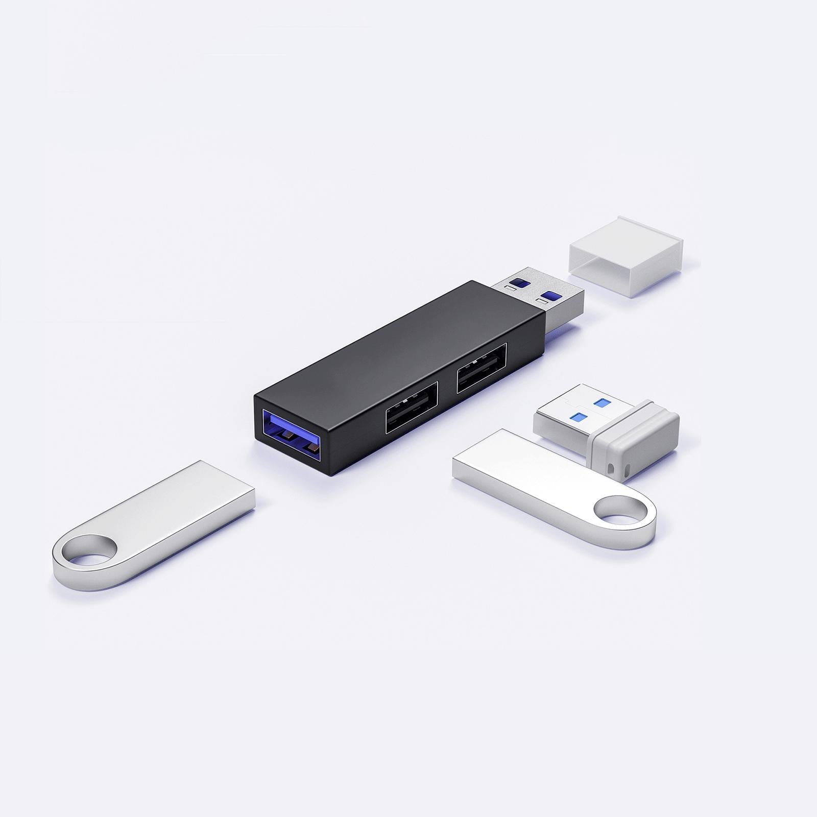 Plug and Play: Slim USB 3.0 hub for connecting up to 3 USB devices, like hard disk, mouse, keyboard, printer, digital cameras, camcorders, speakers, scanners, card readers.