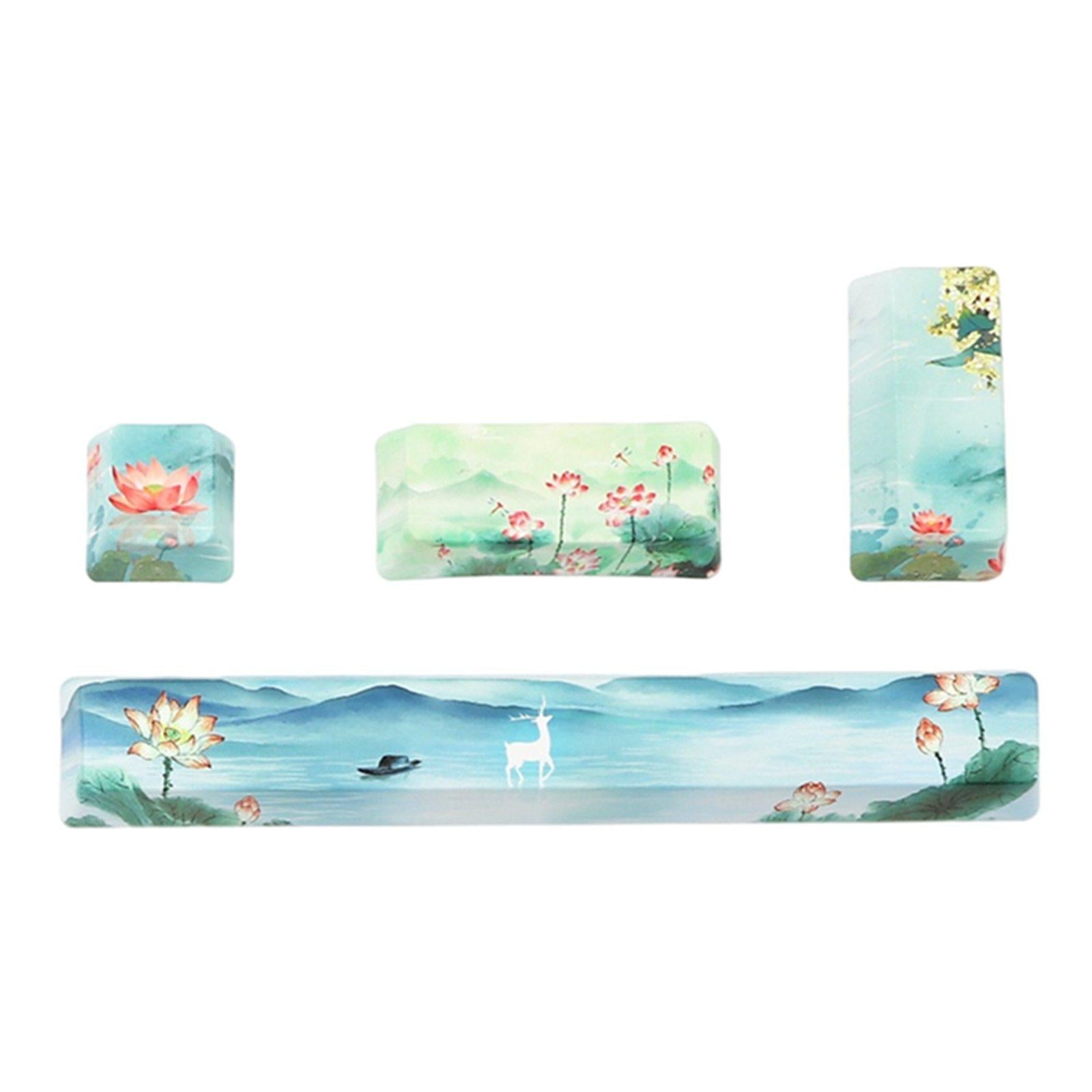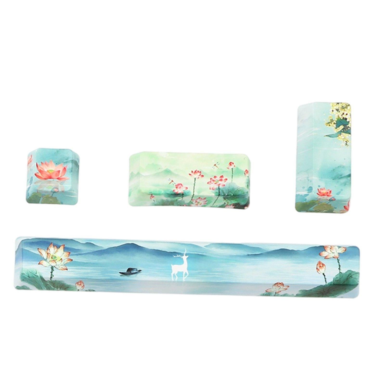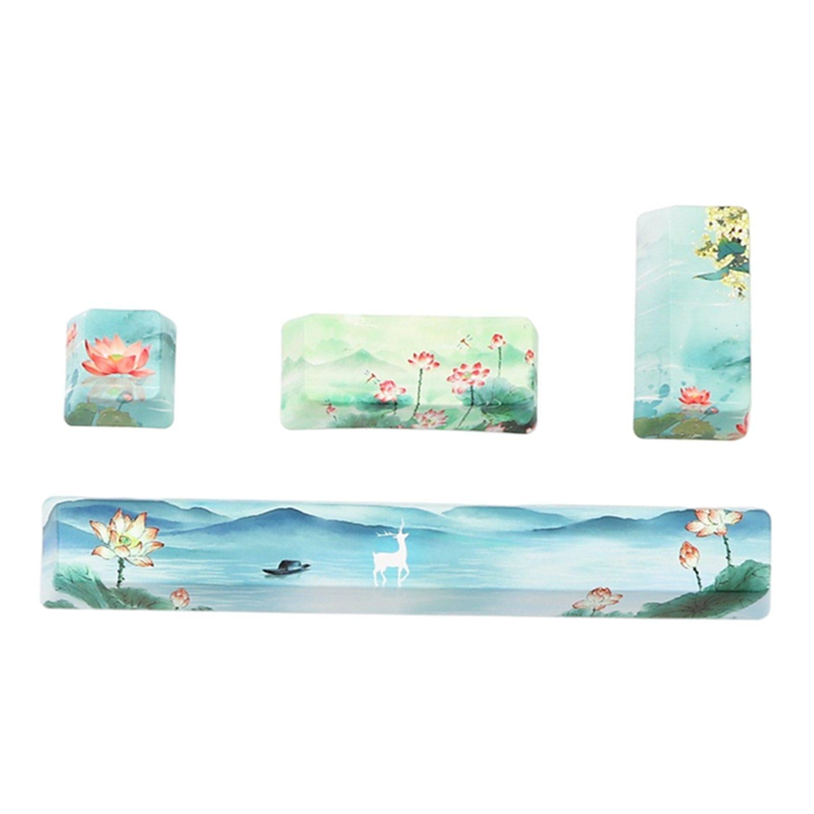 4X Keycaps Set PBT Five Sides Dye-Subbed Spacebar ESC Entre keys Green