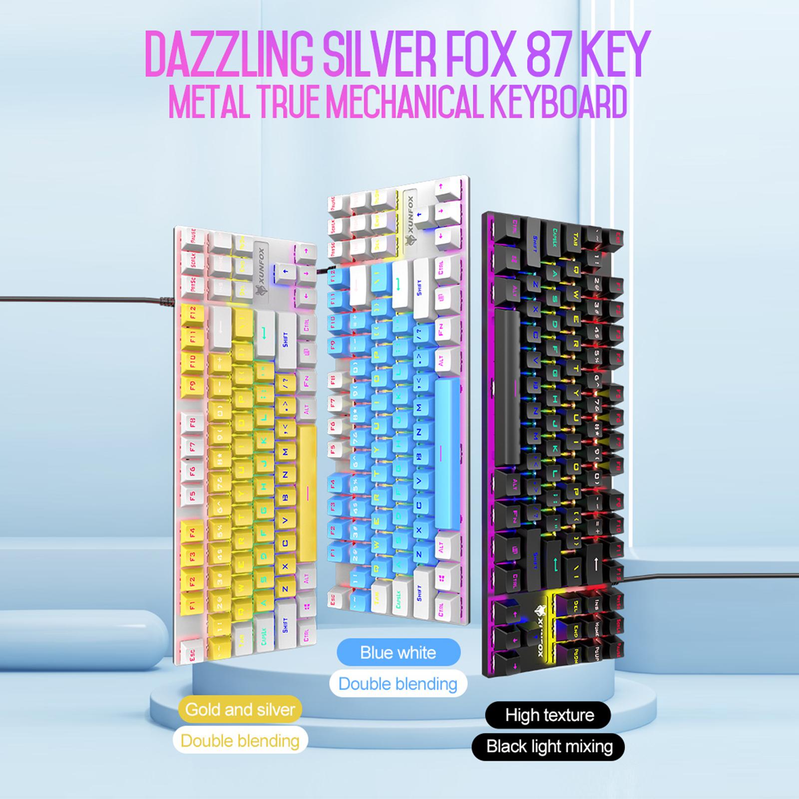 87 Keys Gaming Mechanical Keyboard Wired Rainbow Backlit Durable Non Slip H