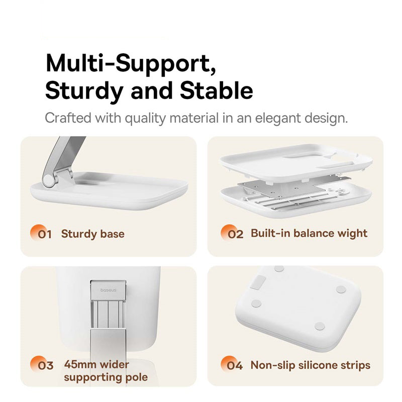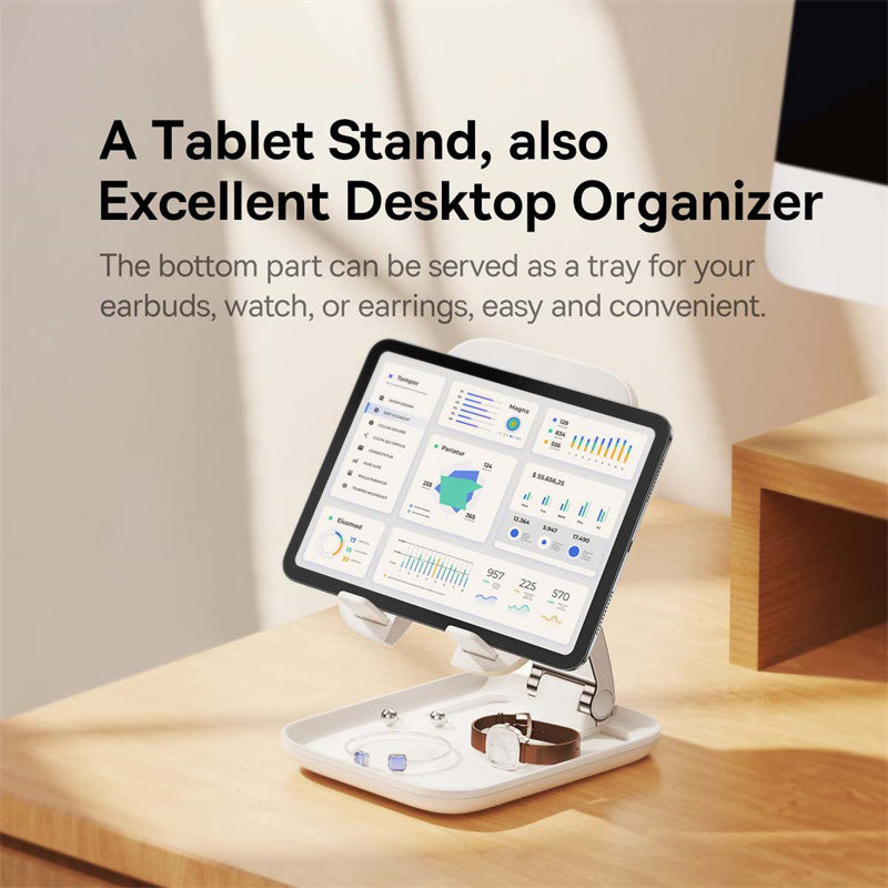 Uniqkart BS-HP009 Foldable Tablet Stand Height Adjustable ABS+PC Tablet Holder Desktop Organizer - White