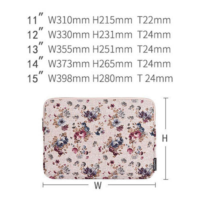 Laptop Sleeve Protective Case Fabric Flower Pattern Soft Carrying Zipper Bag Cover - Khaki/11 inch