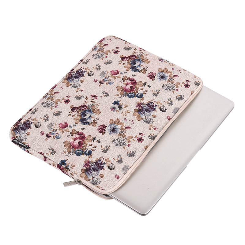 Laptop Sleeve Protective Case Fabric Flower Pattern Soft Carrying Zipper Bag Cover - Khaki/12 inch