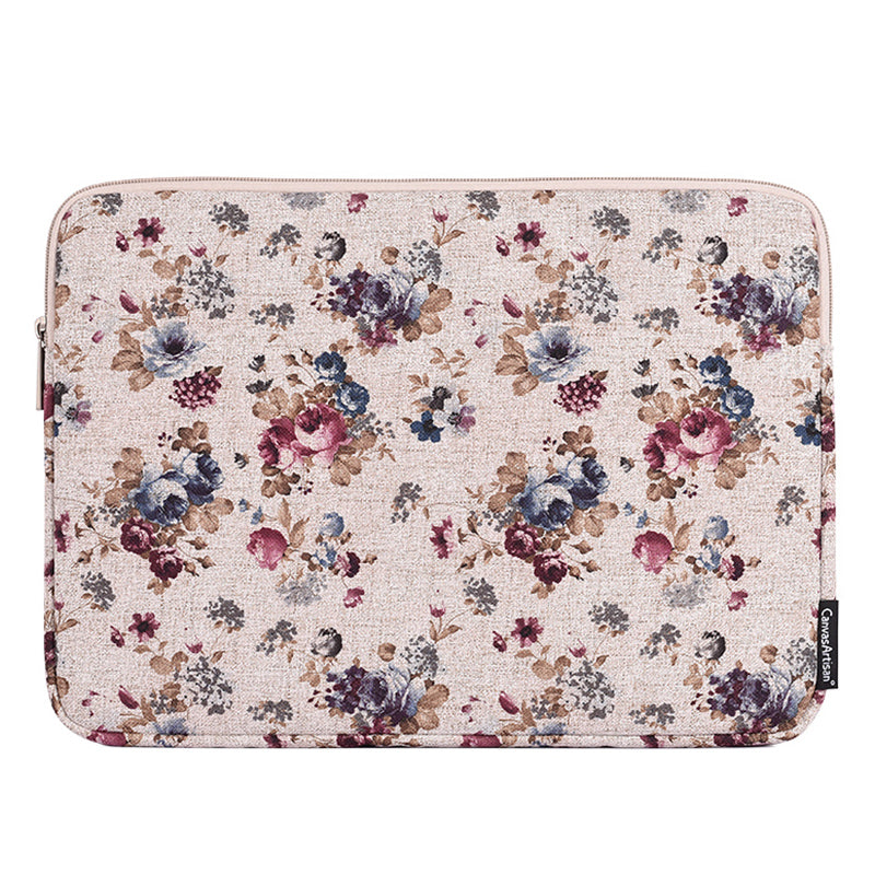 Laptop Sleeve Protective Case Fabric Flower Pattern Soft Carrying Zipper Bag Cover - Khaki/14 inch