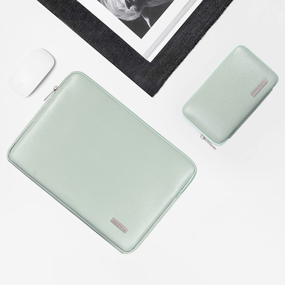 Anti-shock 11inch Laptop Protection Sleeve Wear-resistant PU Leather Notebook Computer Bag with Small Pouch - Green