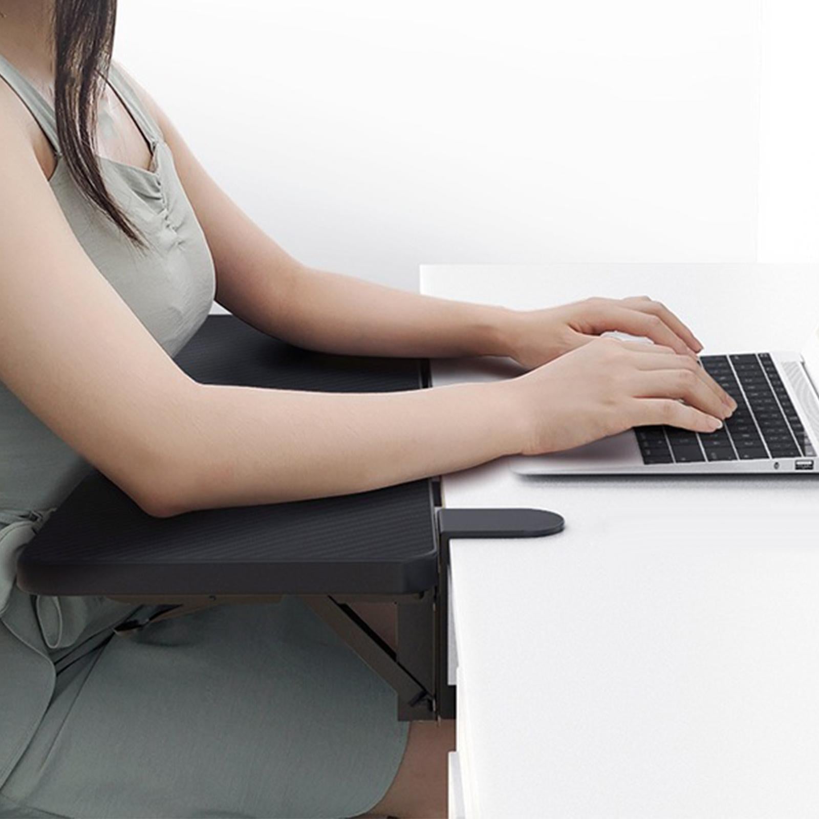 Foldable Desk Arm Rest: folding desk shelf tray and horizontal alignment, or folds to hide under desk when not in use. Space saving.