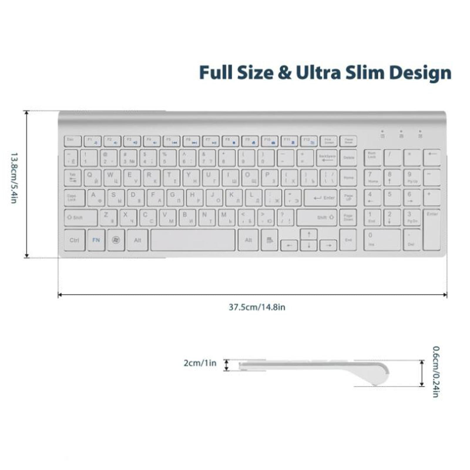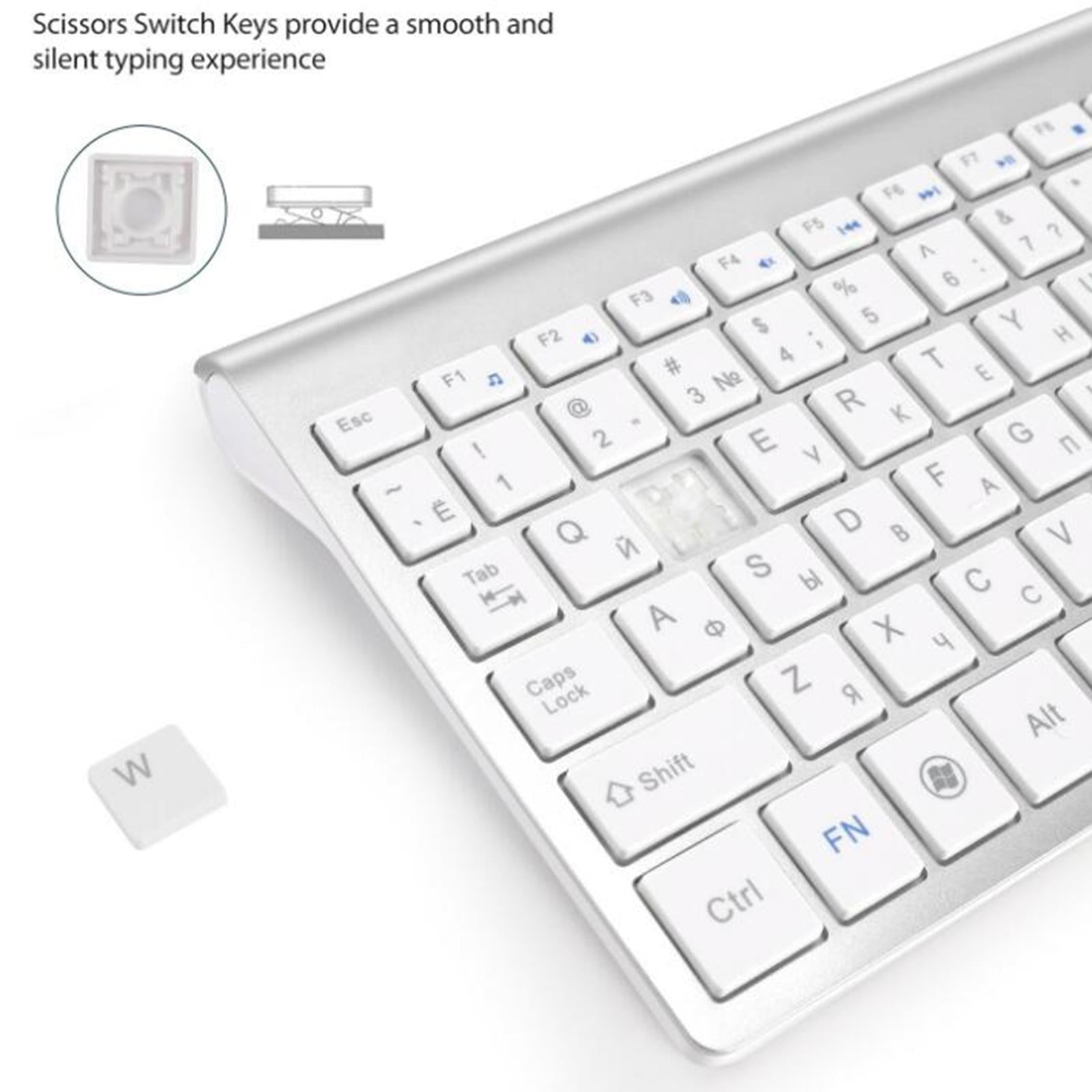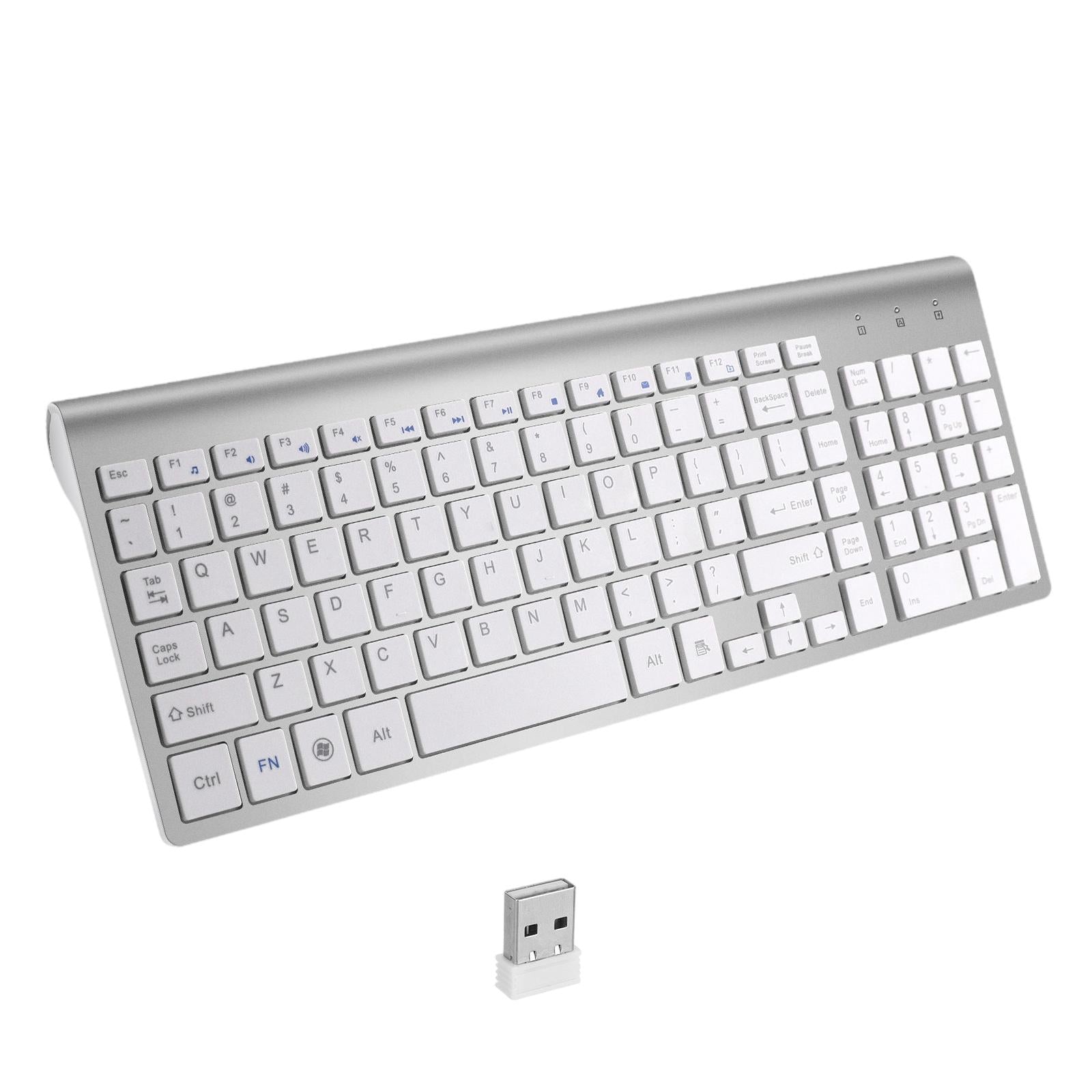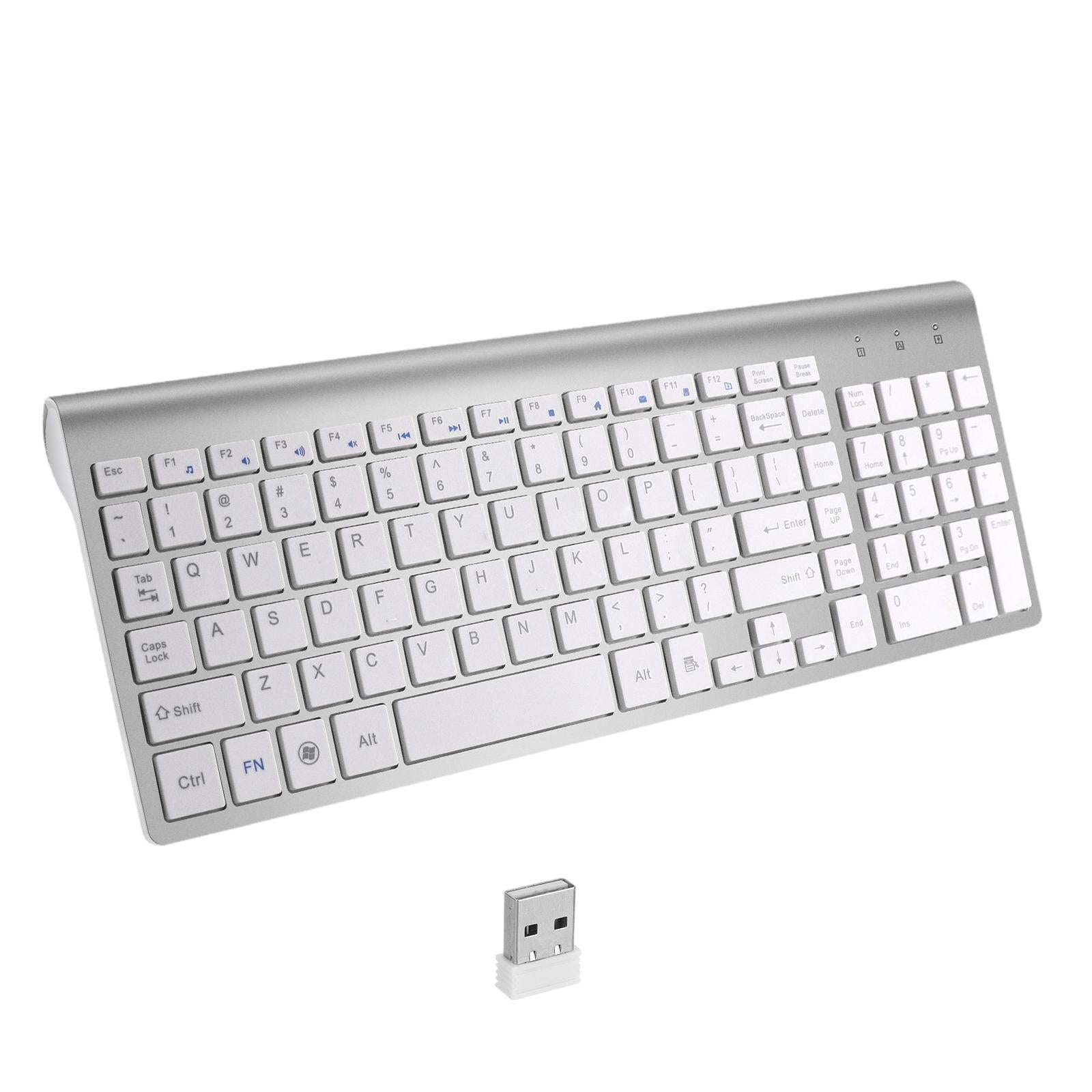 Desktop Slim 2.4G Wireless Keyboard Quiet for PC Laptop Numeric Keypad Silver White