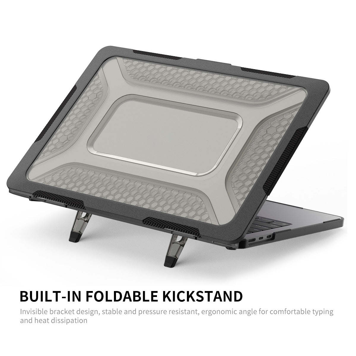 for MacBook Air 13 inch (2022) A2681 (US) 3-in-1 Laptop Case Hard PC Kickstand Protective Cover with TPU Keyboard Film + Anti-Dust Plugs - Grey