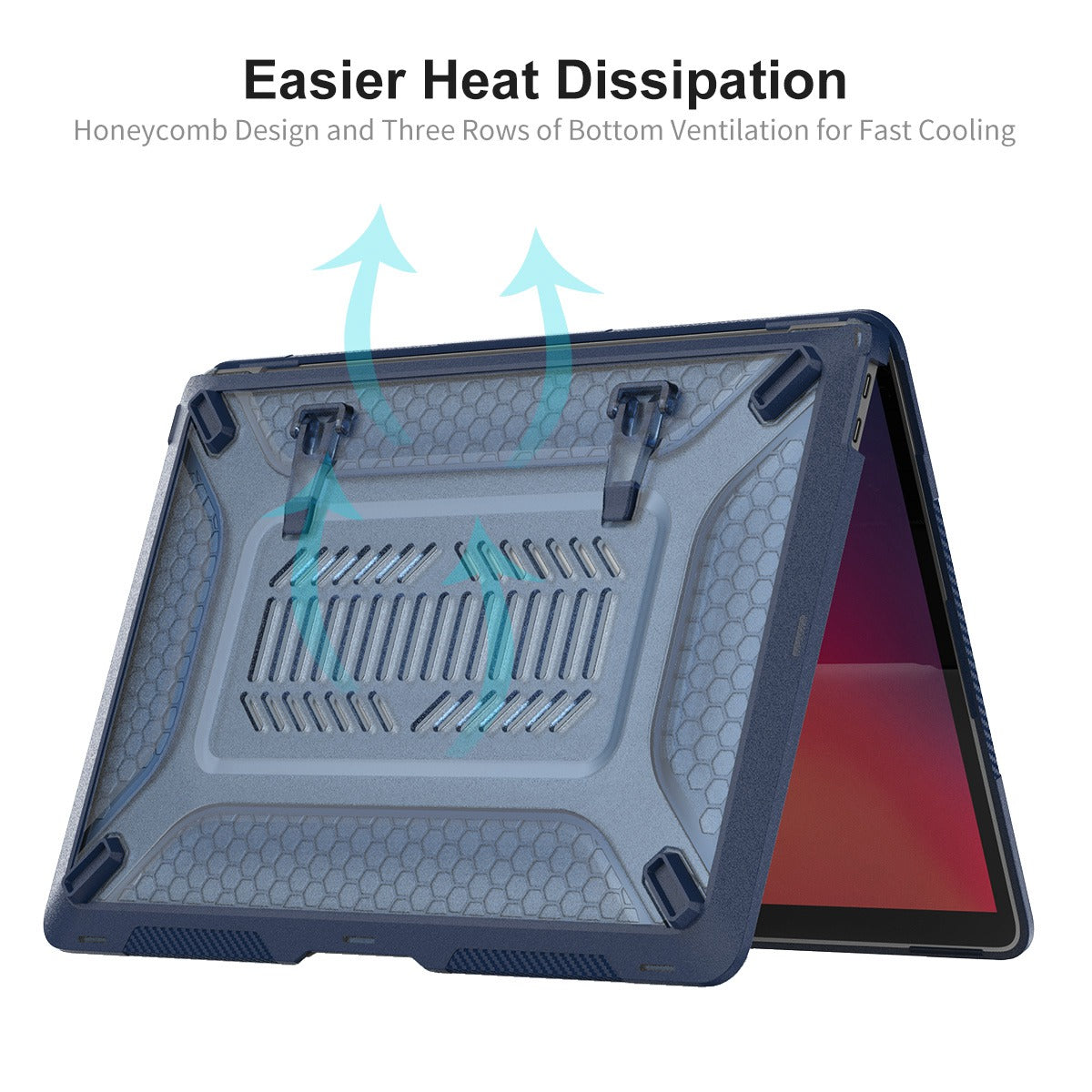 for MacBook Pro 13 inch (2020) A2251 / A2289 / A2338 (US Version) Fold Kickstand Heat Dissipation Case Hard PC Cover with Clear TPU Keyboard Film + Anti-Dust Plugs - Blue
