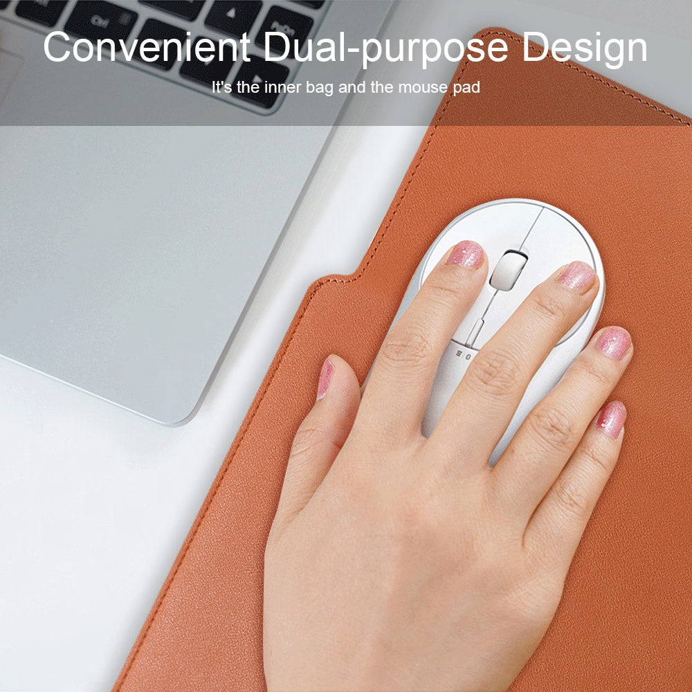 for 15inch/15.6inch Laptop Storage Bag PU Leather Multifunction Mouse Pad Notebook Computer Sleeve Set - Grey