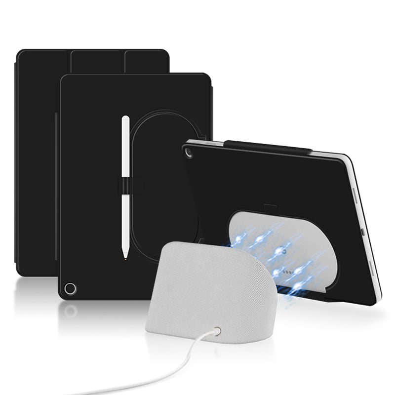 Uniqkart for Google Pixel Tablet Tri-fold Stand Cover PU Leather Magnetic Attachment Tablet Case - Black