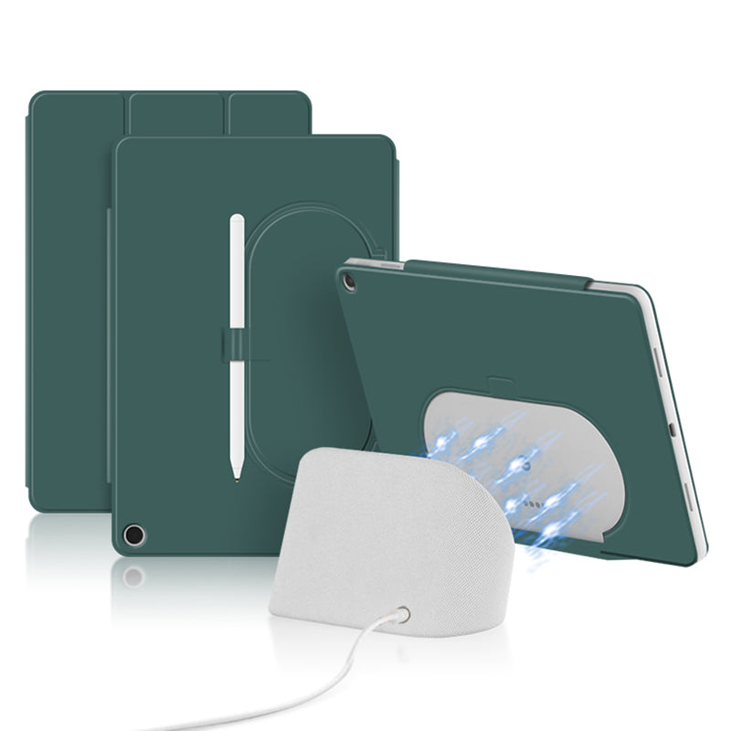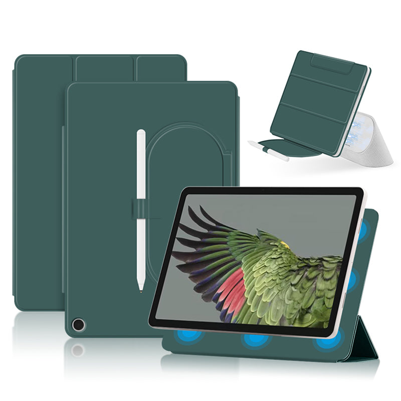Uniqkart for Google Pixel Tablet Tri-fold Stand Cover PU Leather Magnetic Attachment Tablet Case - Cyan