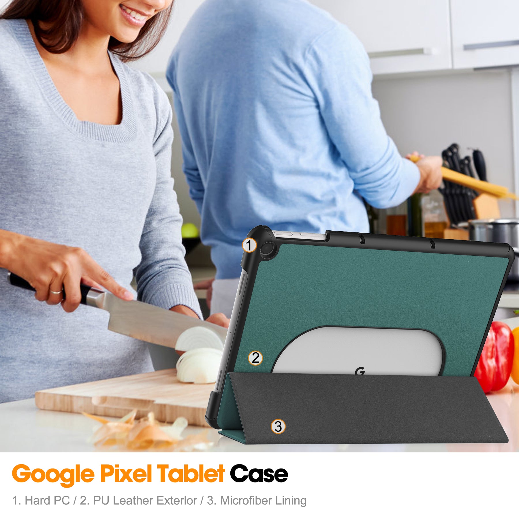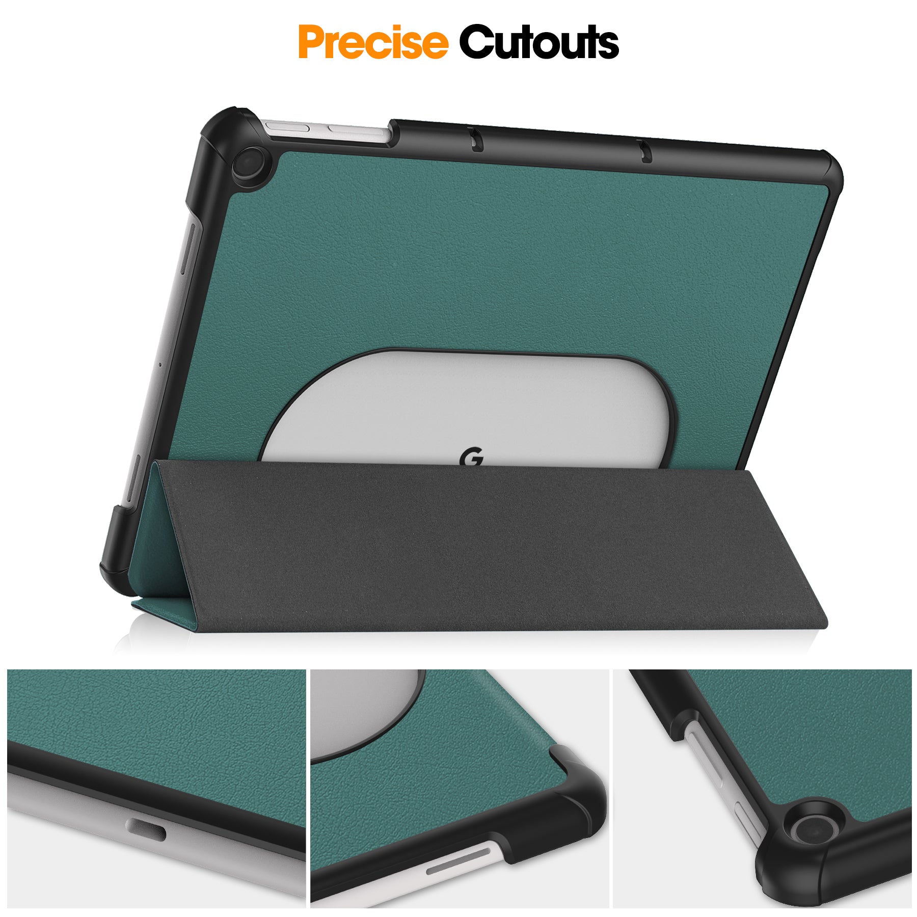 Uniqkart for Google Pixel Tablet Tri-fold Stand Tablet Case PU Leather Anti-drop Tablet Cover - Blackish Green