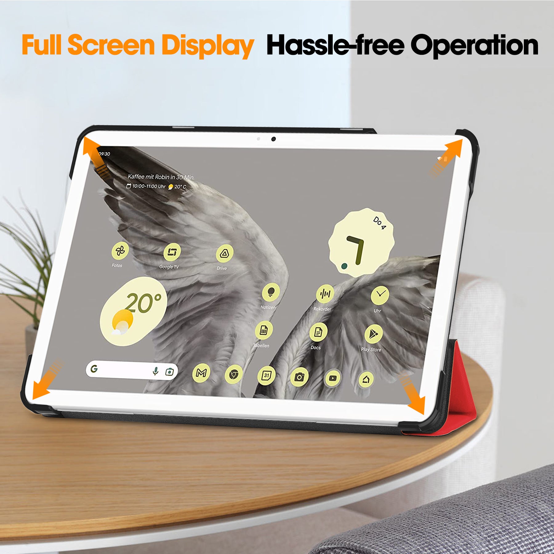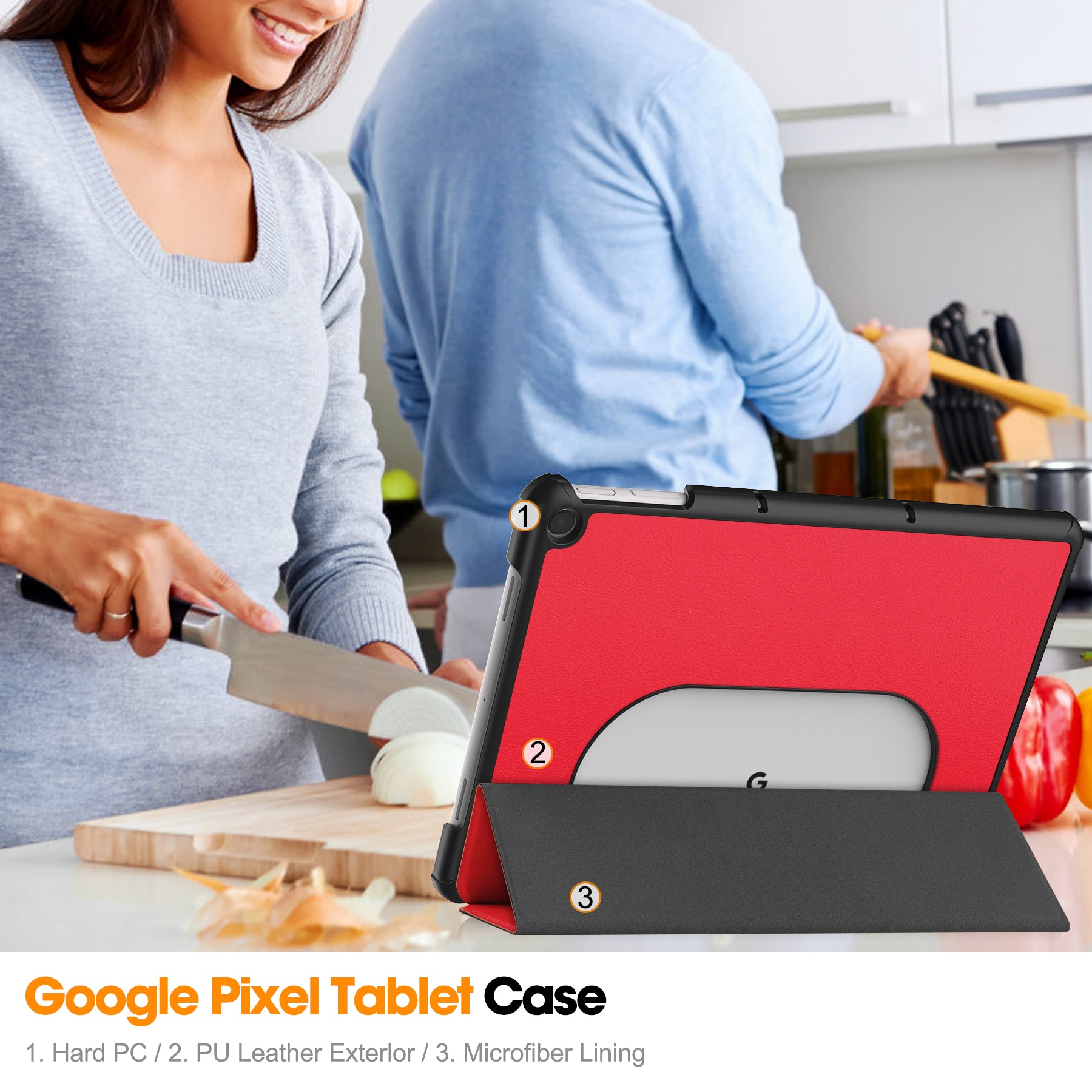 Uniqkart for Google Pixel Tablet Tri-fold Stand Tablet Case PU Leather Anti-drop Tablet Cover - Red