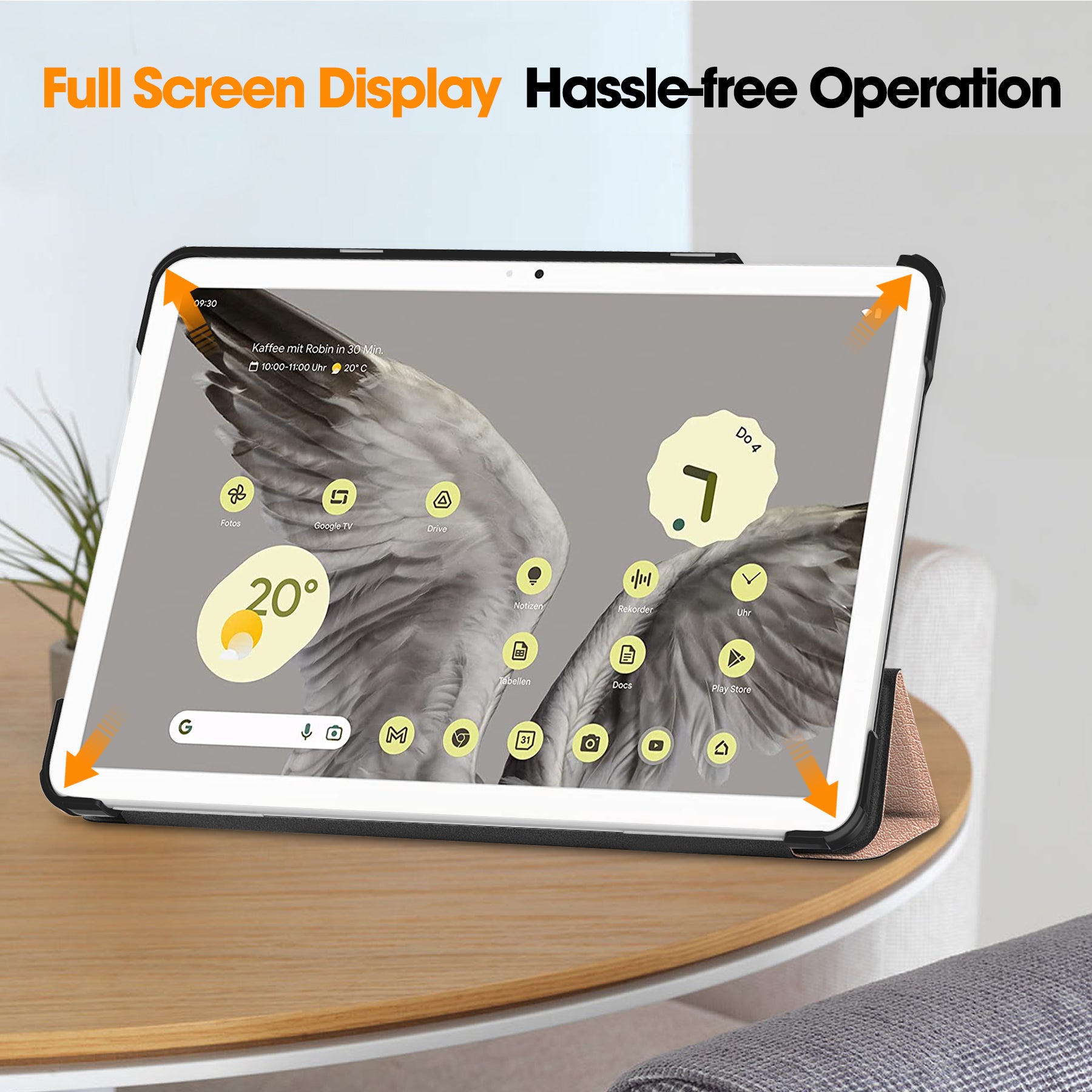 Uniqkart for Google Pixel Tablet Tri-fold Stand Tablet Case PU Leather Anti-drop Tablet Cover - Rose Gold