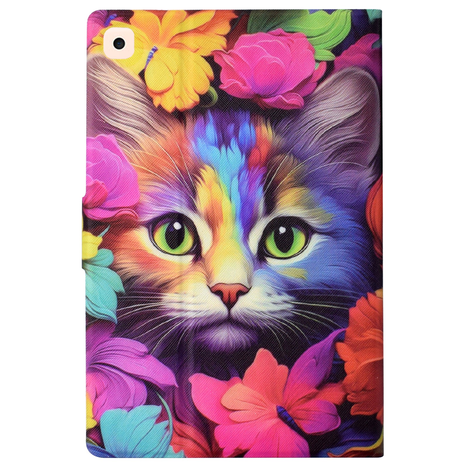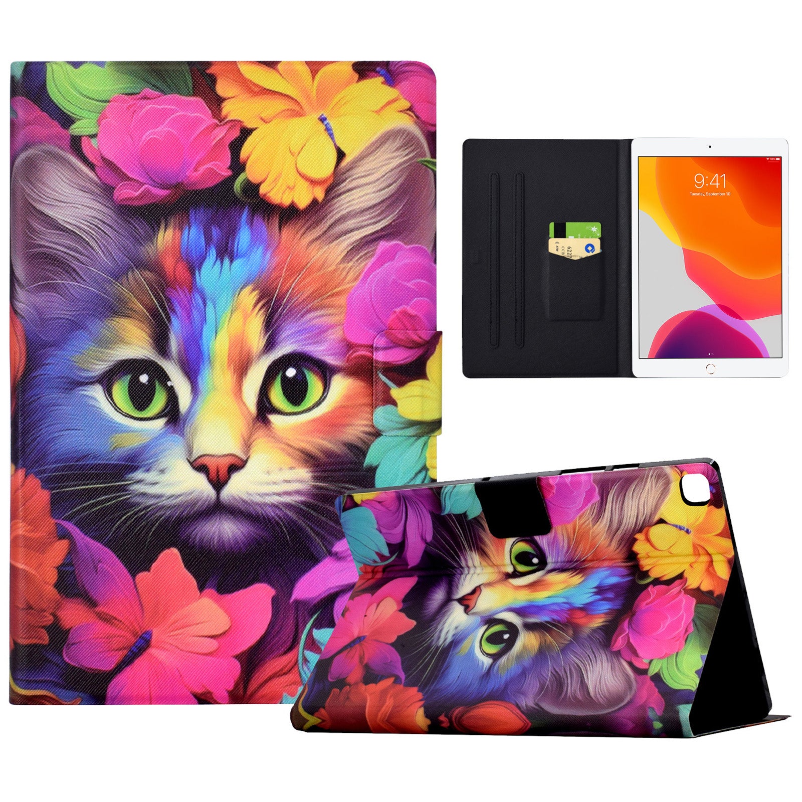 For iPad 10.2 (2020) / (2019) / iPad Air 10.5 inch (2019) Leather Case Pattern Print Card Slots Tablet Cover - Rose Cat